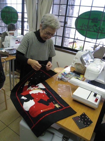 通常は金曜参加の竹澤さんが木曜に参加です。竹澤さん、キルトのタペストリーを作成中