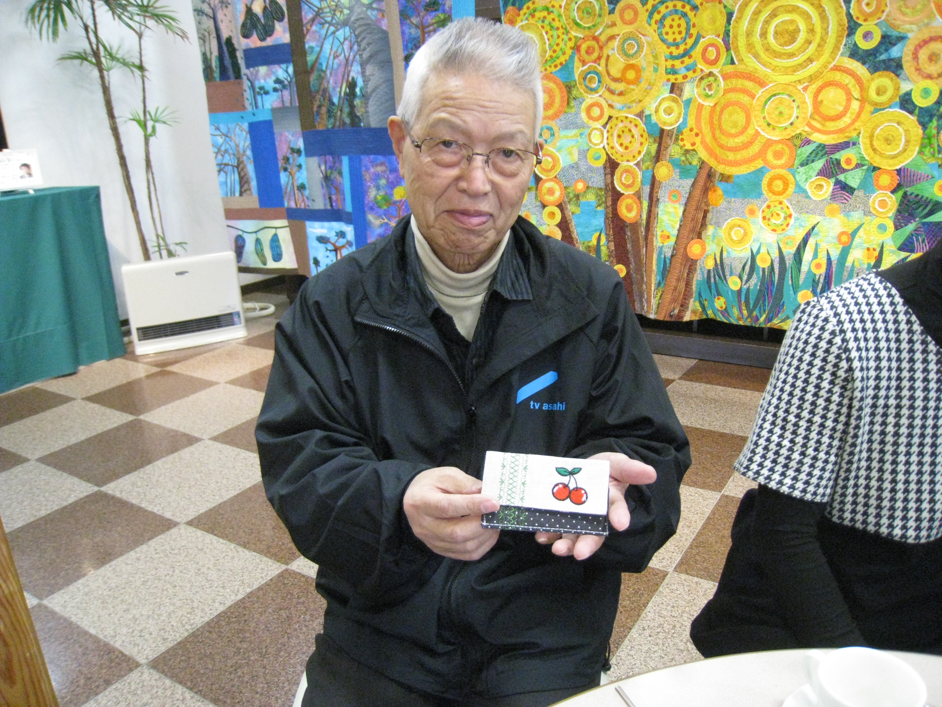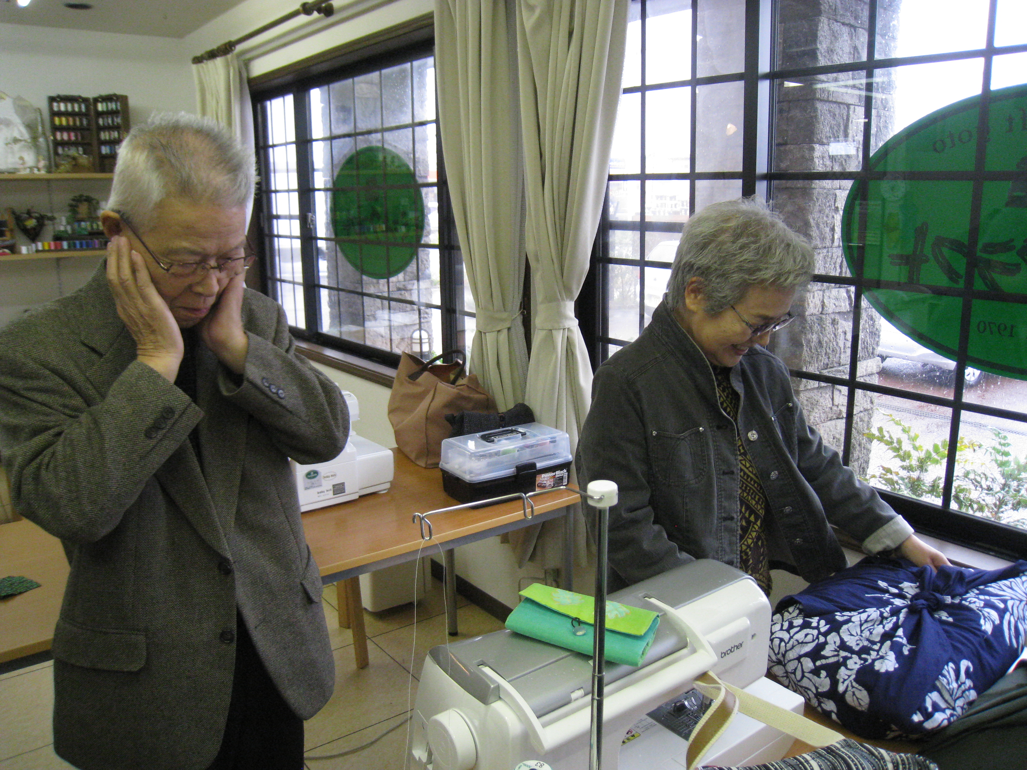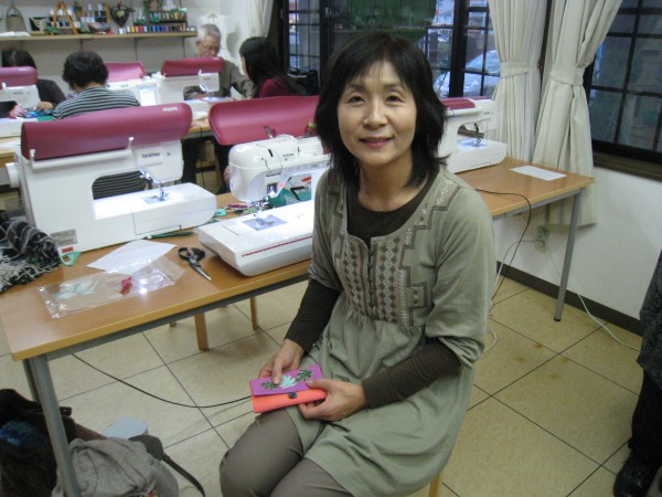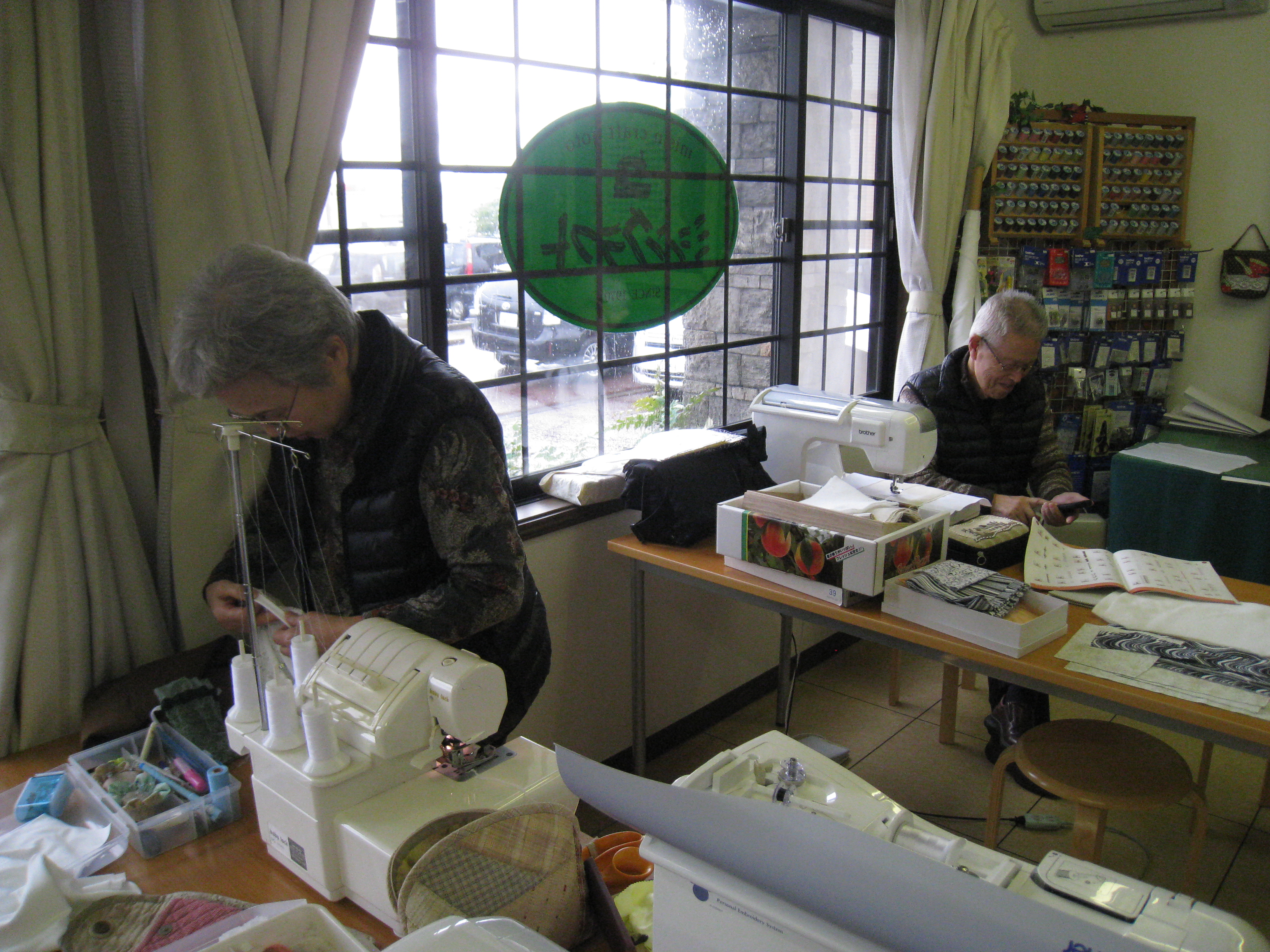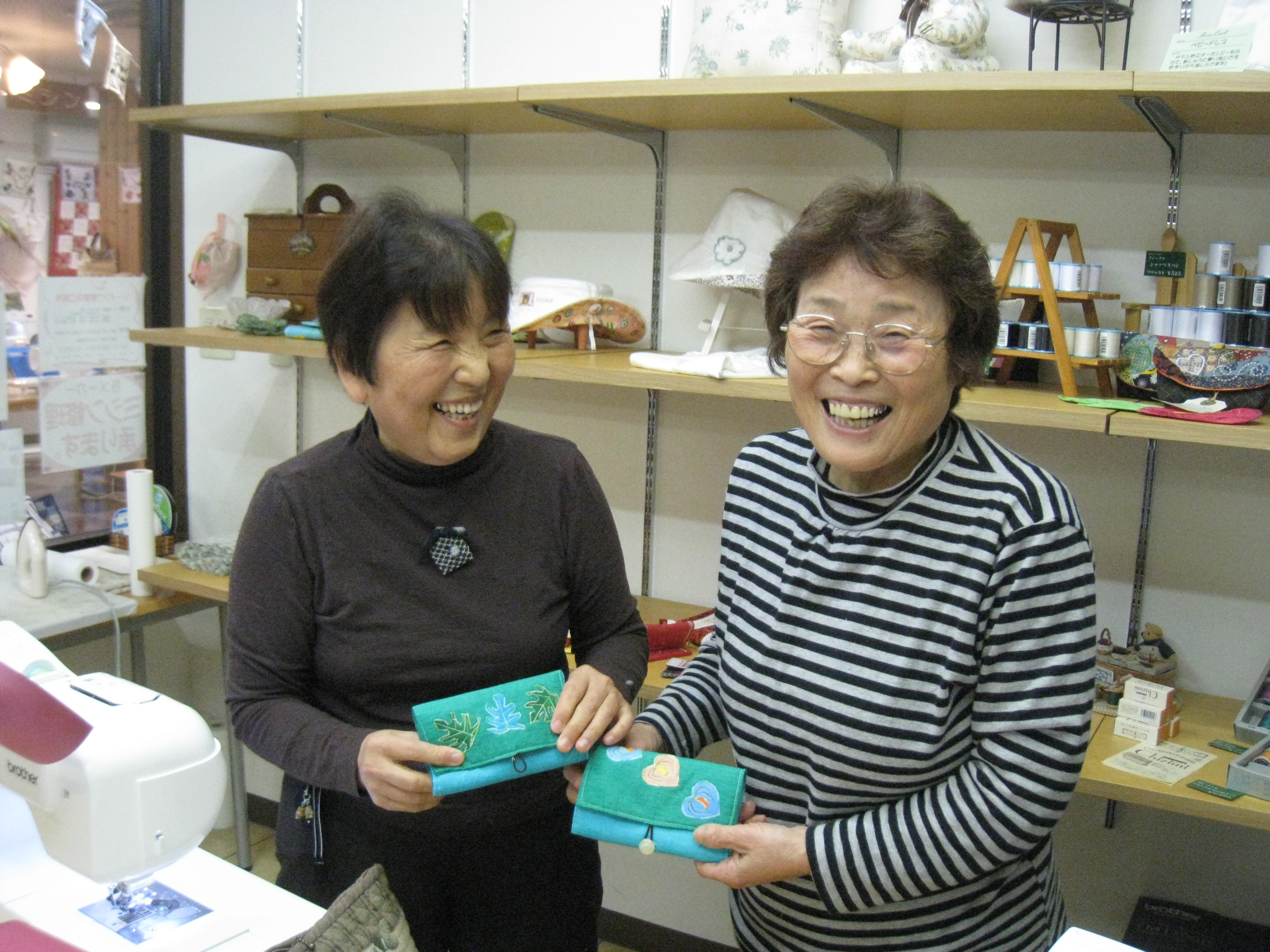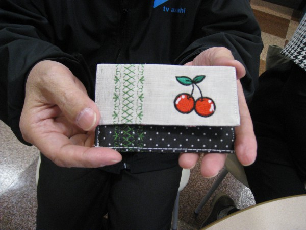 旦那さんも今日はご一緒です。旦那さんは刺しゅうプロで作る、カードケースを『あっ』