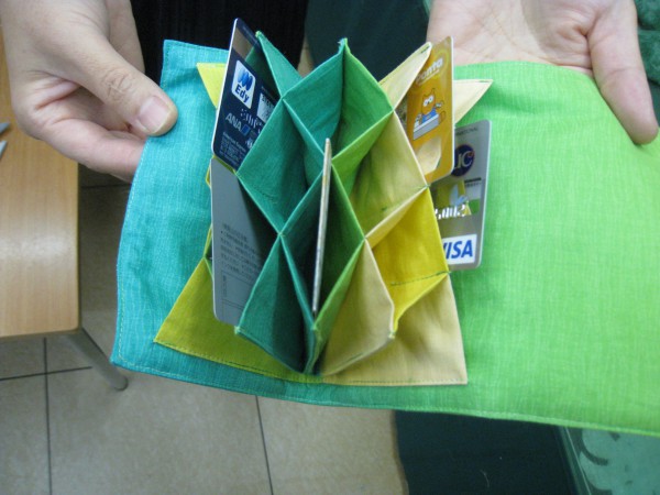 キルトバッグとカードケースを見せてくれました。この2つ、特別講習会で作った作品