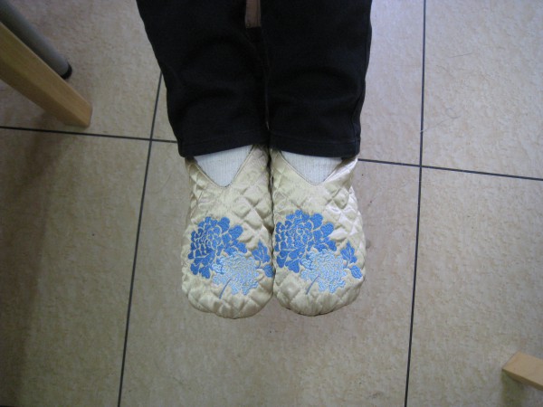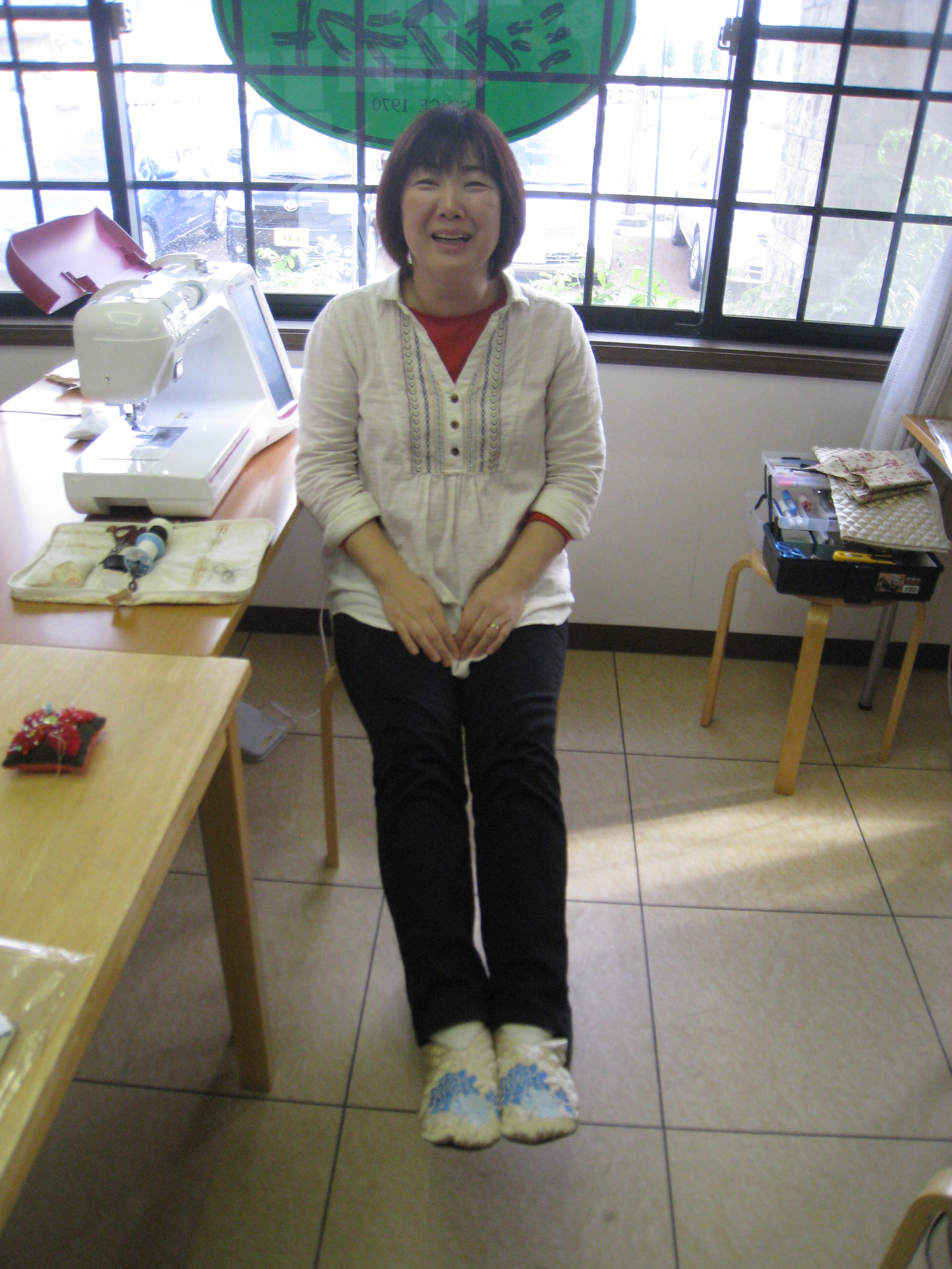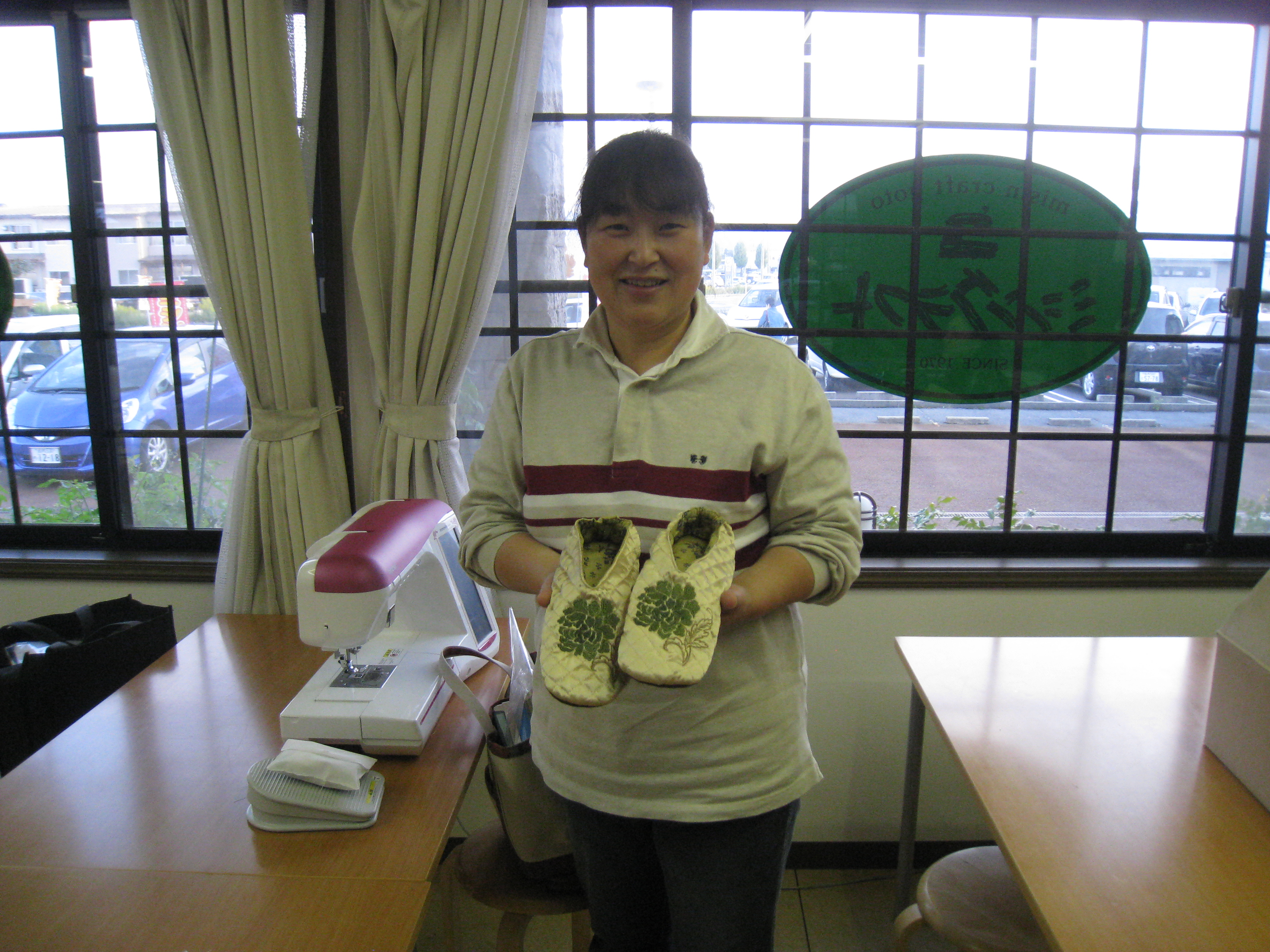 今回の講習のルームシューズは、作るのが簡単そうに見えてちょっとテクニックが必要な