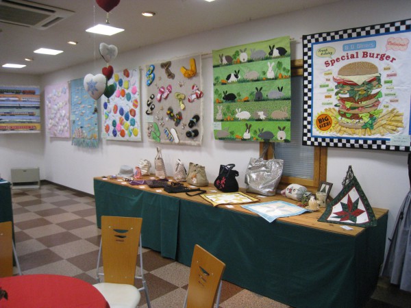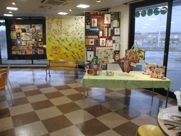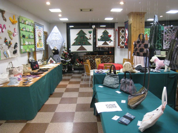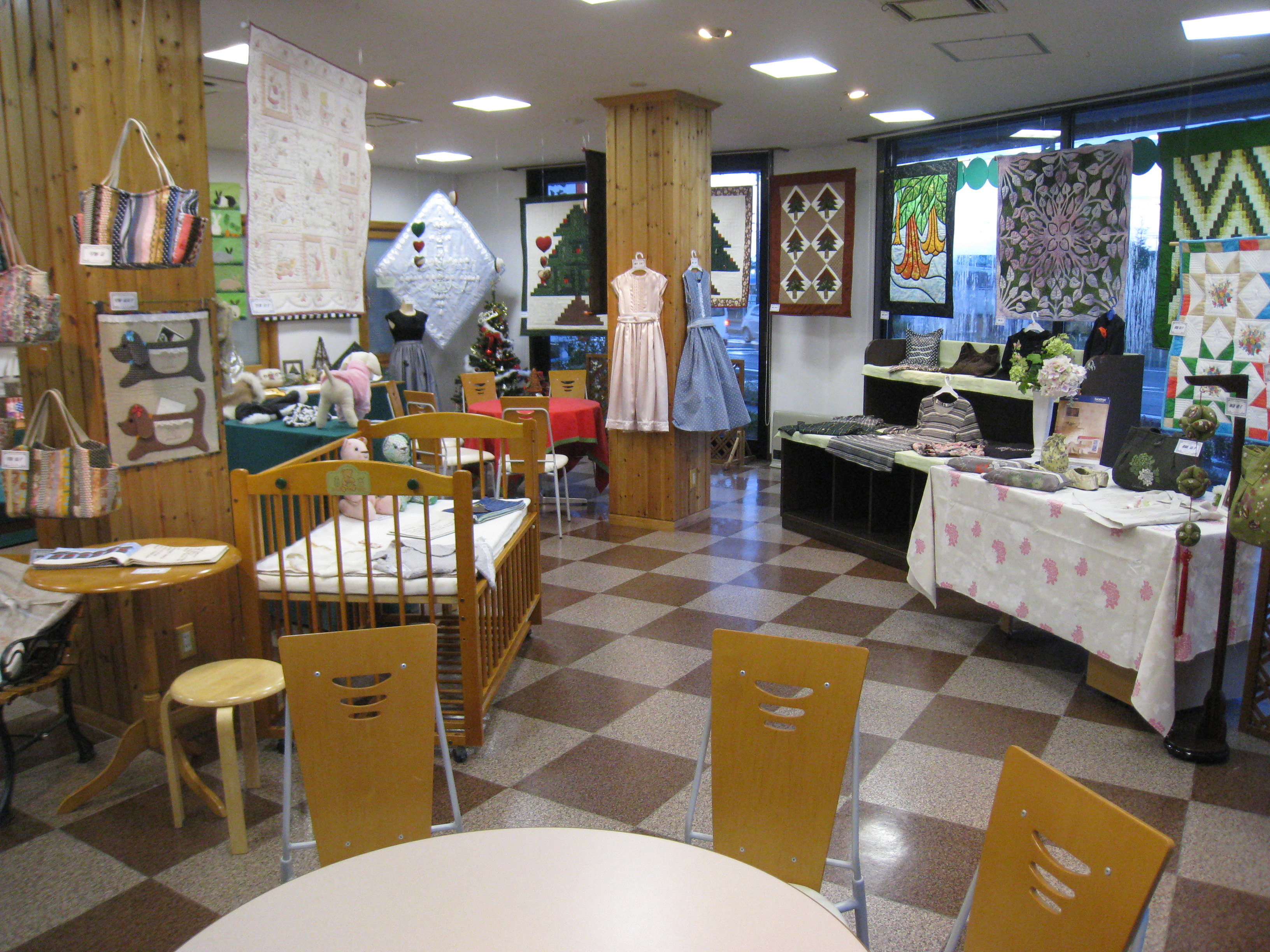 カットソー、キルト、ペットの服など多数お借りしての展示です。他の人が作成した