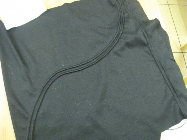 午前の部参加の粕谷さん、黒のニットでカットソー作りです。これの襟ぐりと