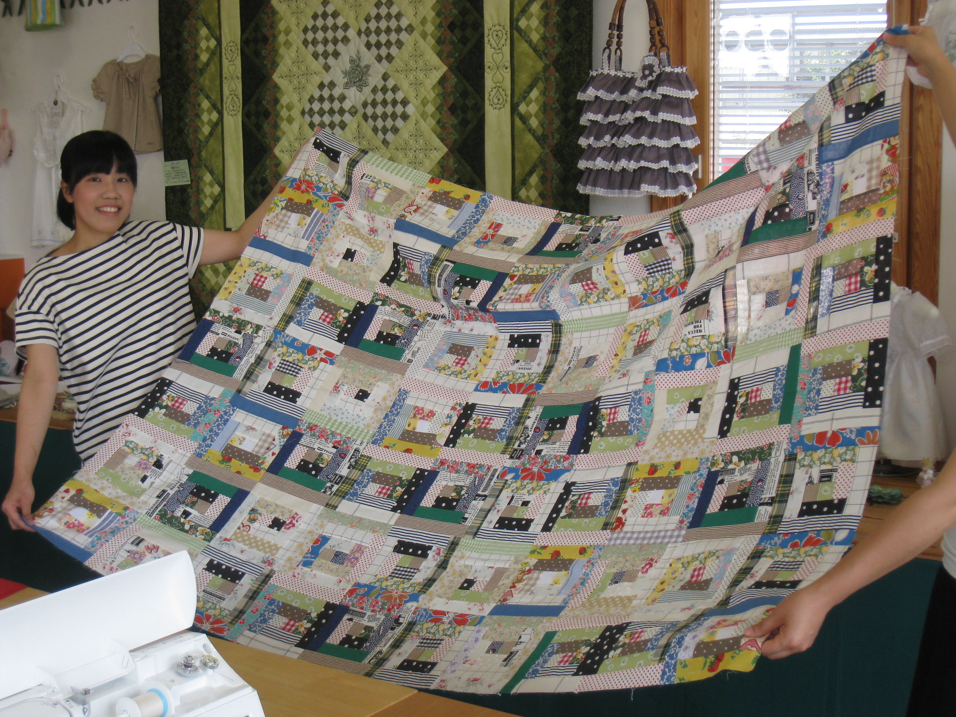 ほぼ出来上がりました。地道にパーツを縫い合わせてここまで縫い上げました。お見事です。