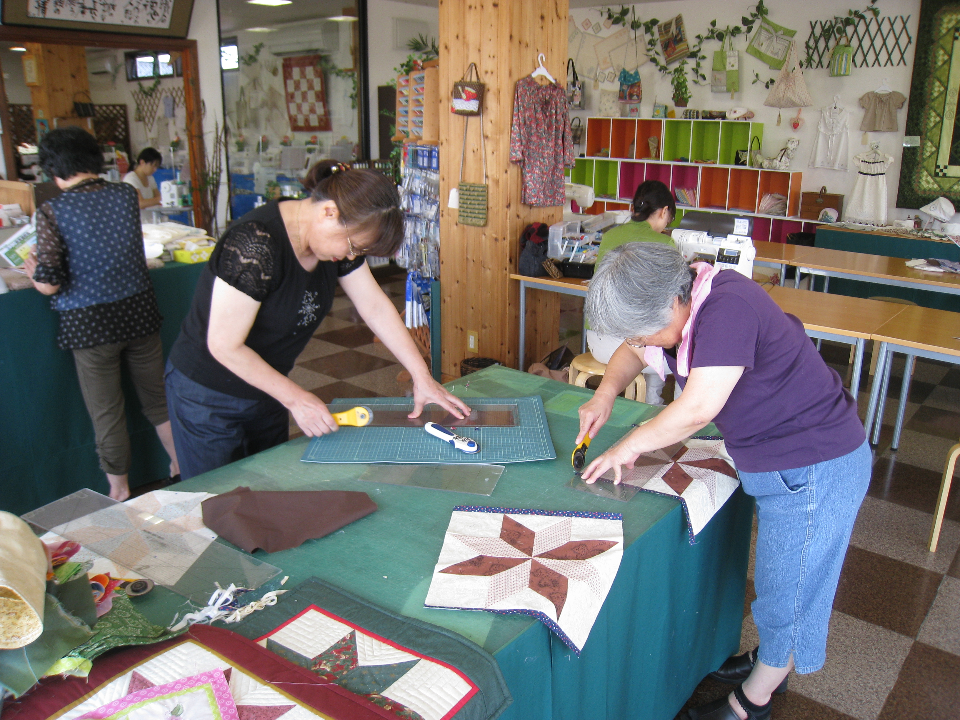 今日の講習は、ミシンを使うよりローラーカッターでカットする場面のほうが多く、それでも皆さん