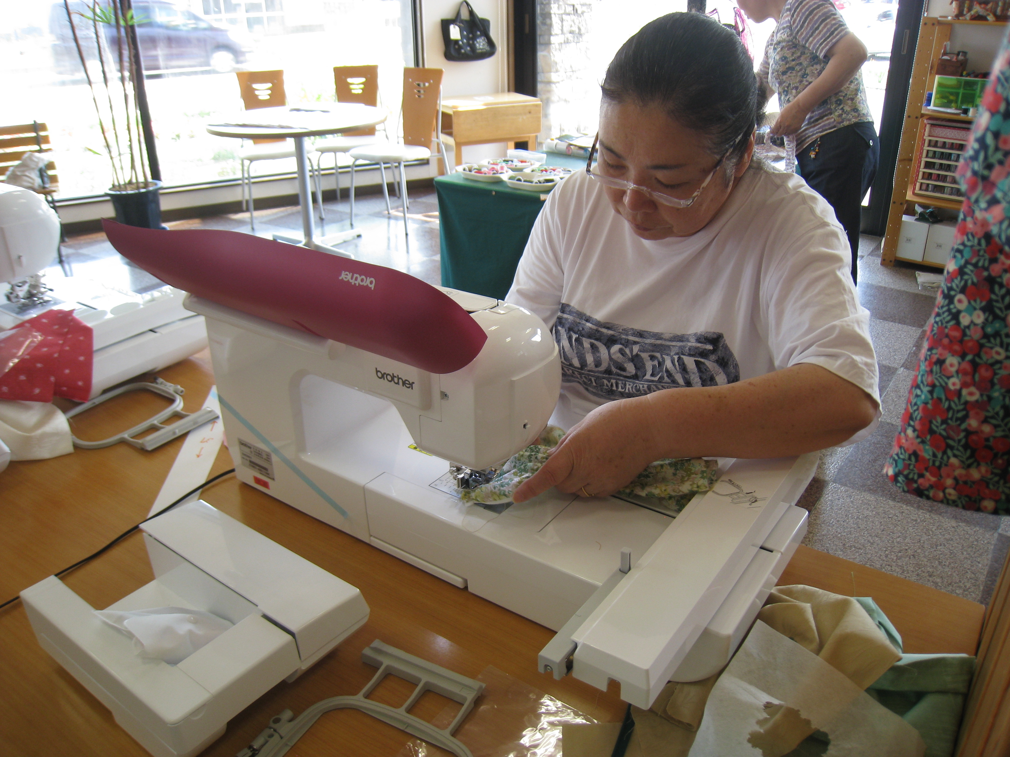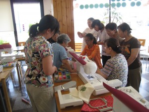今回の講習会も、『ゆったり、縫うことを楽しもう』というサブテーマ?で行いました。隣の人の
