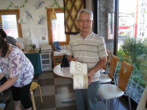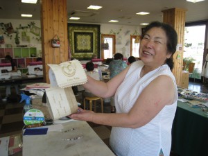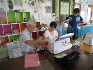 余目の早坂さん夫妻は今日も参加です。昨日に引き続き、だんなさんはクッション作り。奥さん