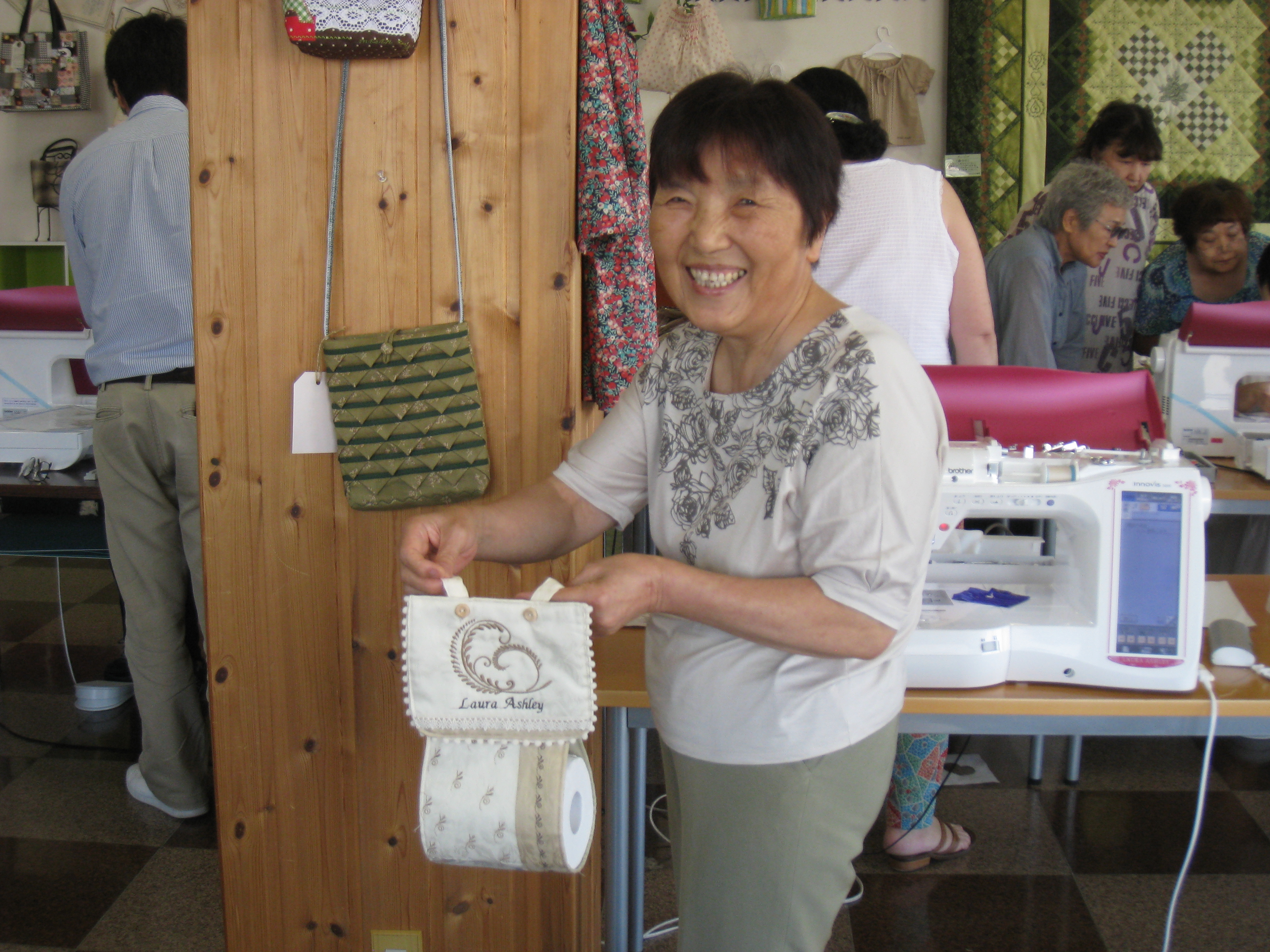 本日は『ローラアシュレイの刺しゅう入りトイレペーパーホルダー』の講習会で、午前6名、午後