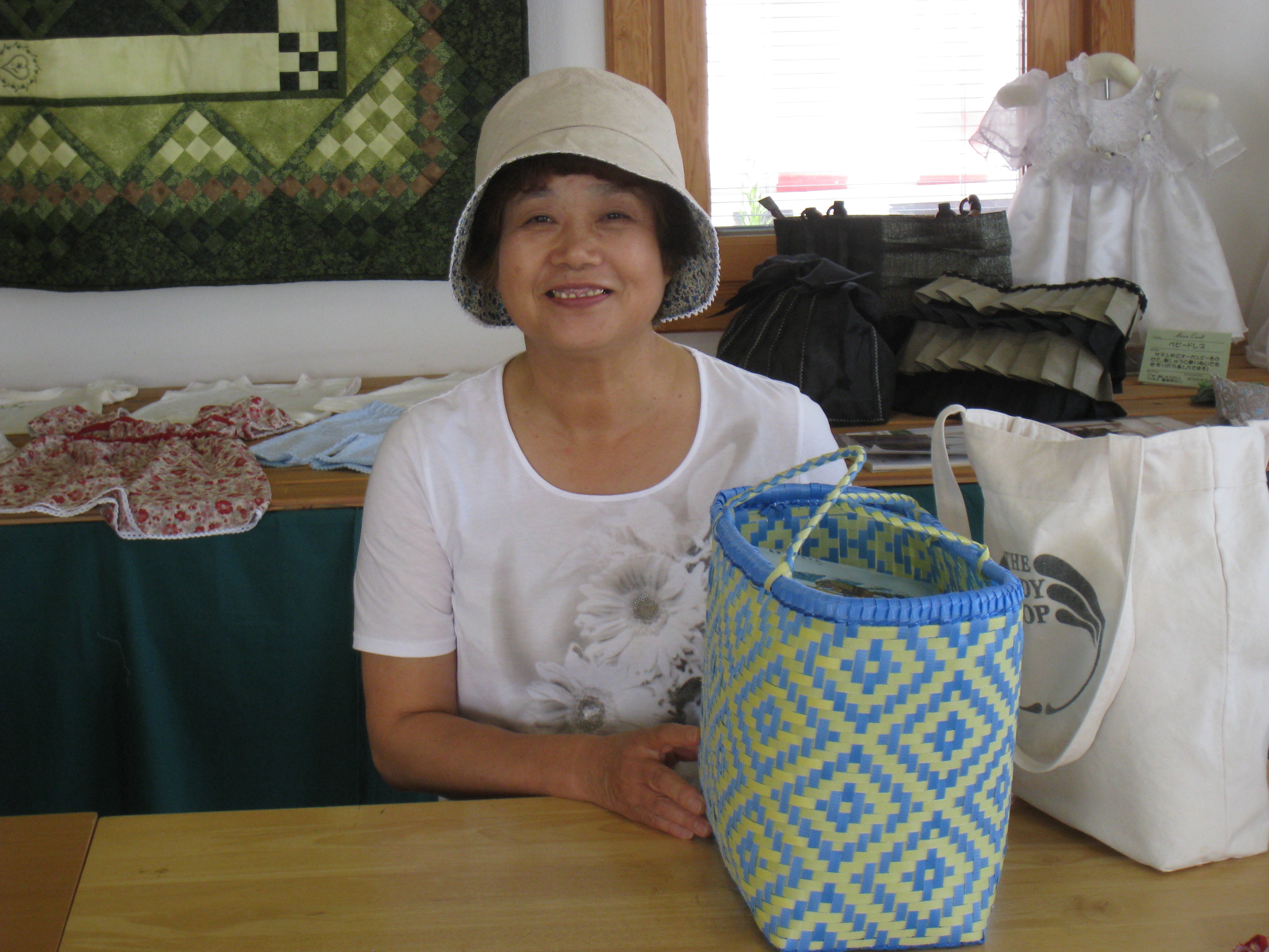 渡部さんは、まだまだ暑い日のための帽子作りに挑戦しました。ほぼ2時間半で完成!