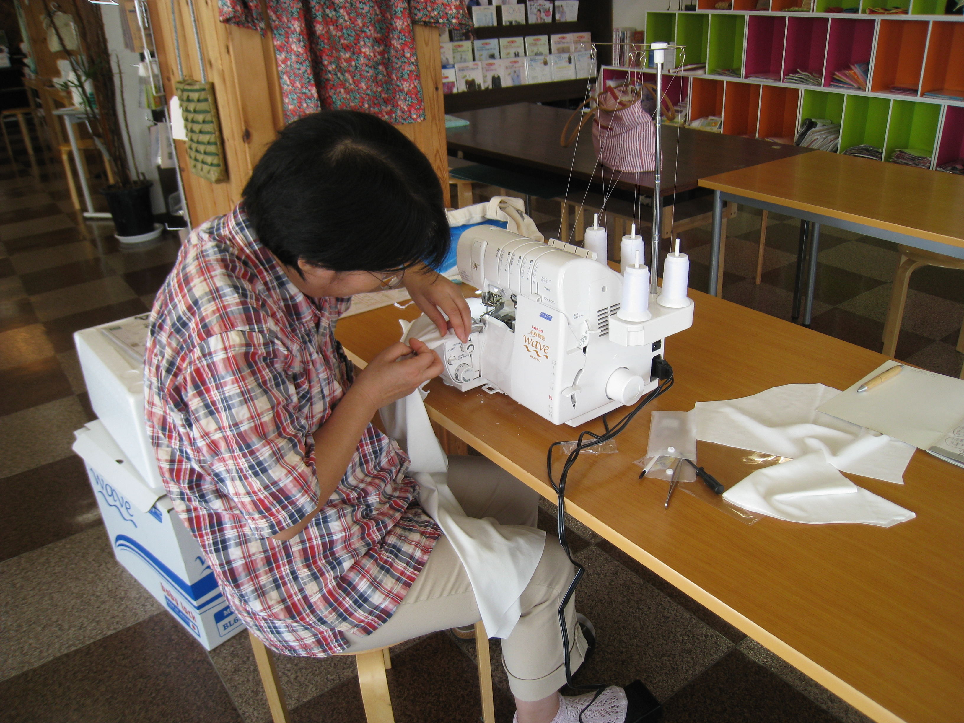 今日は通常の講習会はお休みの日なのですが、ロックミシンを買っていただいたお客様に