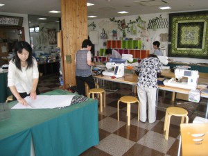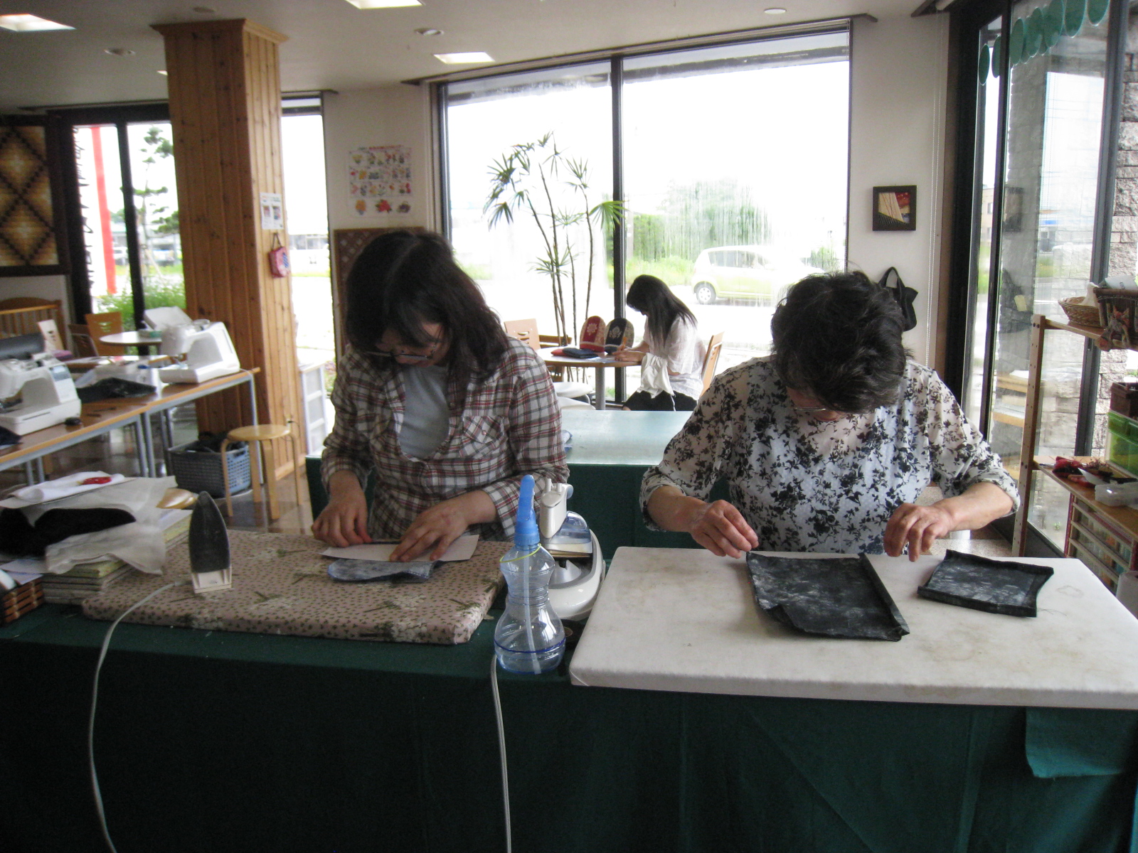 裏地に保温シートを入れて縫います。今日は1日掛けての講習なので、皆さん時間に