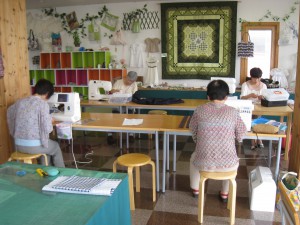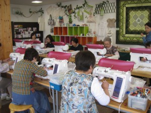 土曜日の講習会では陽子さんがログキャビンのベッドカバーを作成中です。