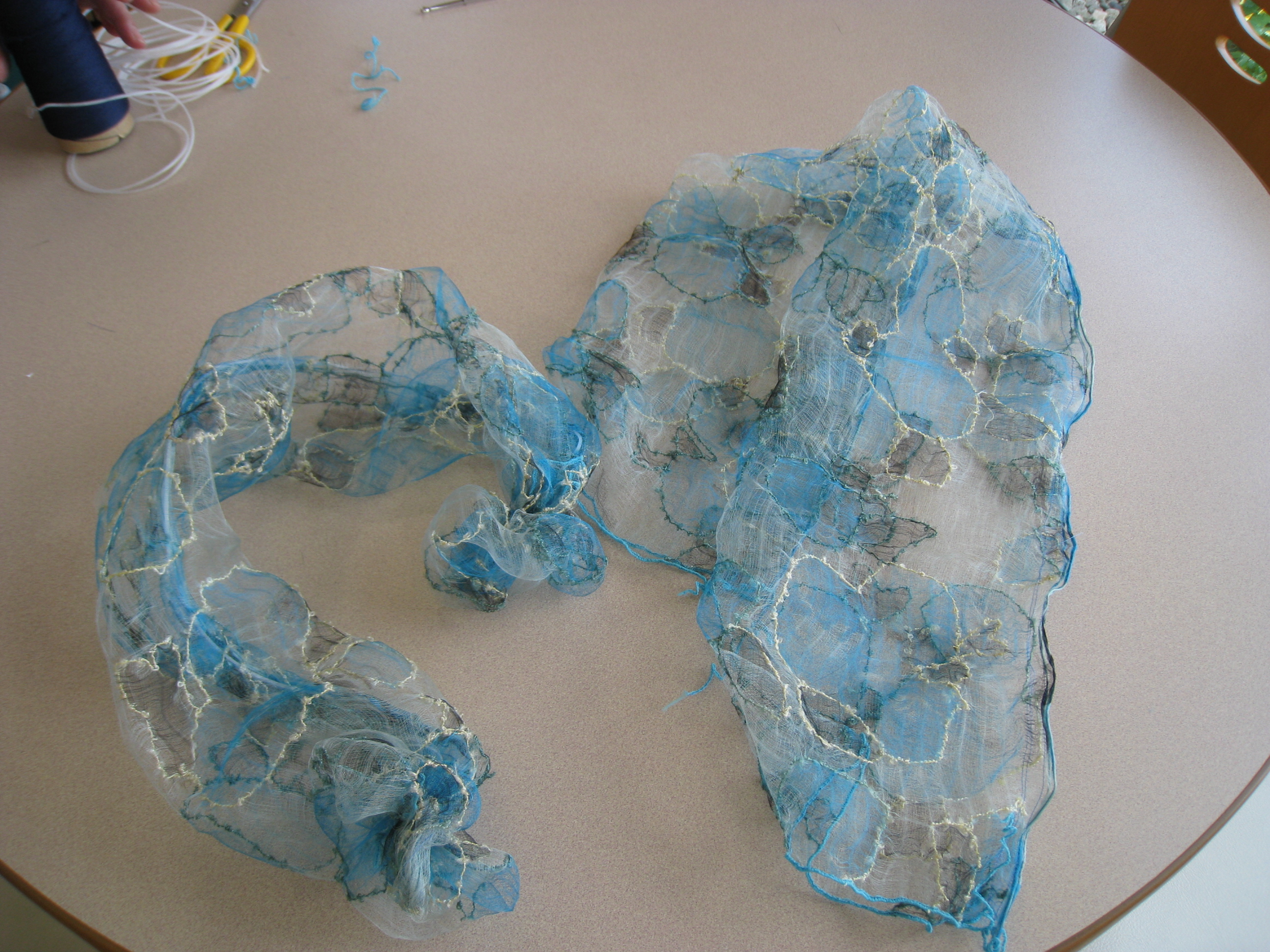 竹澤さんはスカーフを完成させました。某デパートで7000円で売っていたスカーフを真似て