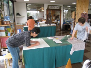 午後の部では、百瀬さんと太田さんがロックミシンを使ってTシャツつくりの初回講習です。