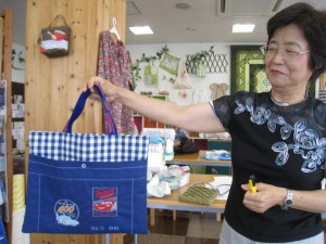 早坂さんはお孫さんの『レッスンバッグ』が完成です。通園バッグとお揃いで、大好きな『カーズ』