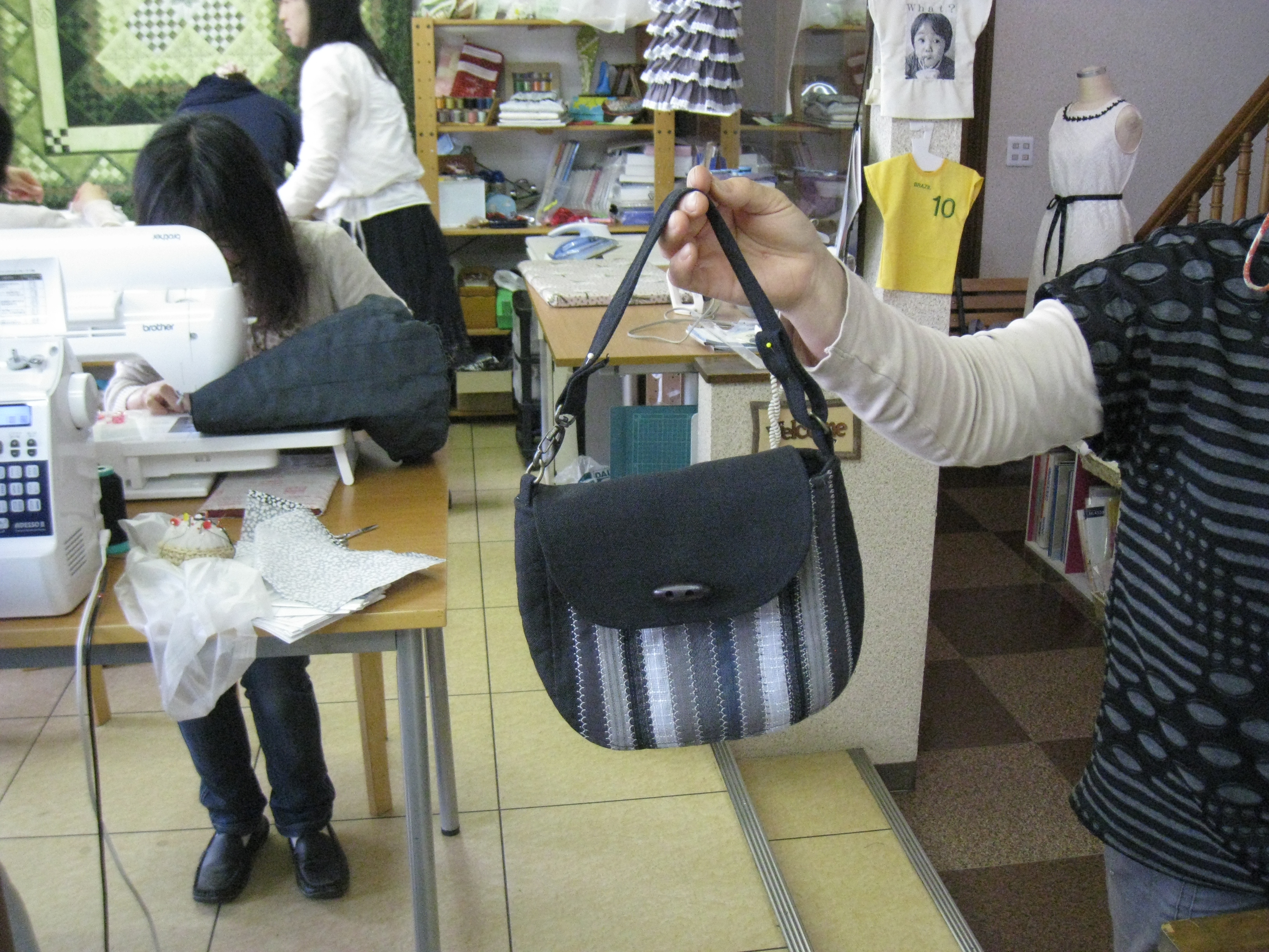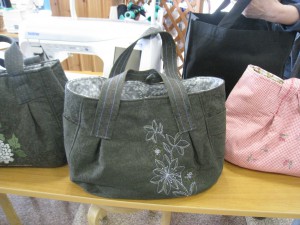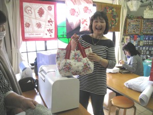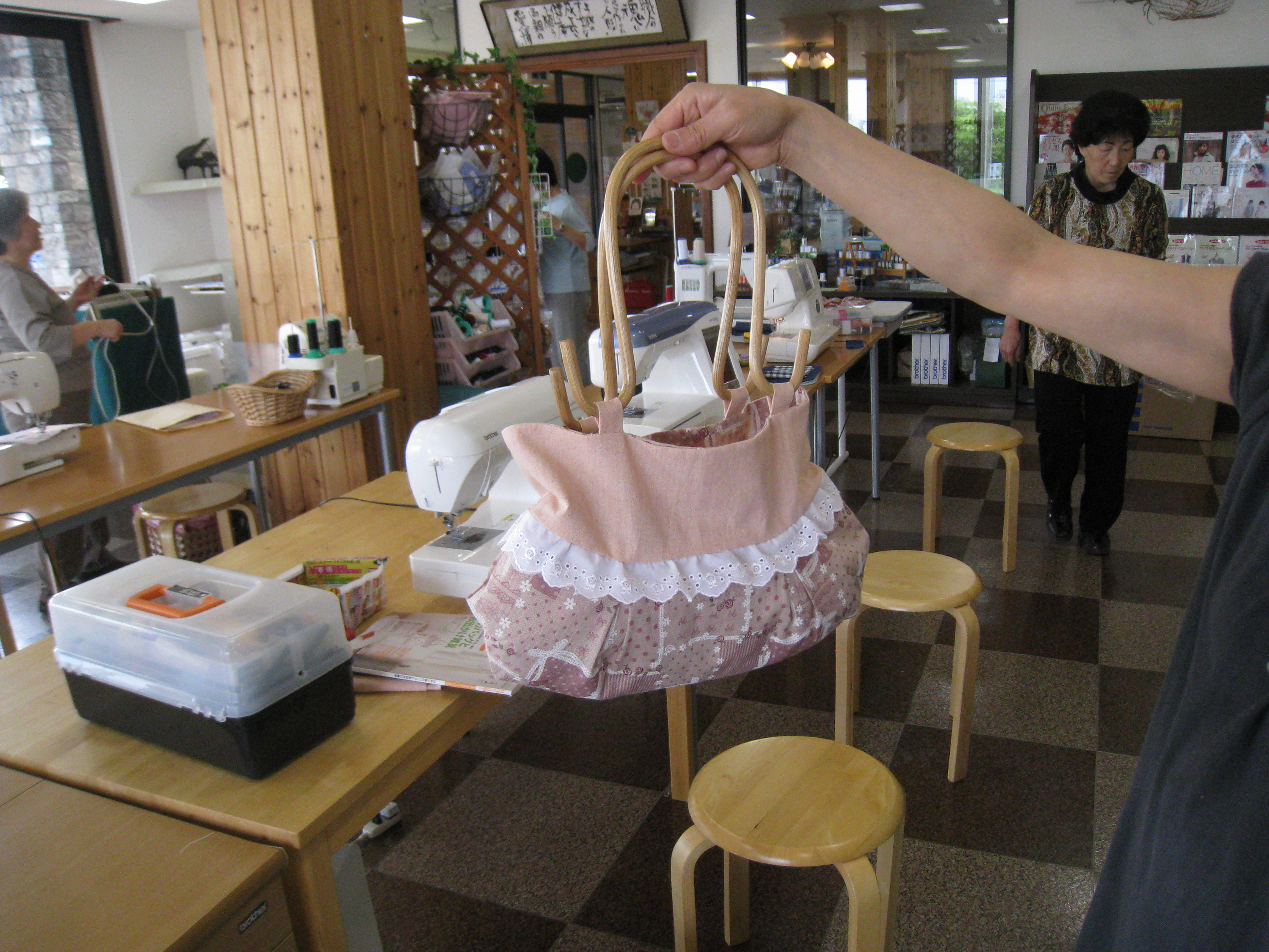 同じ形のバッグを作ってきて見せてくれました。ちょっと硬い生地だったため、針を何本か折って