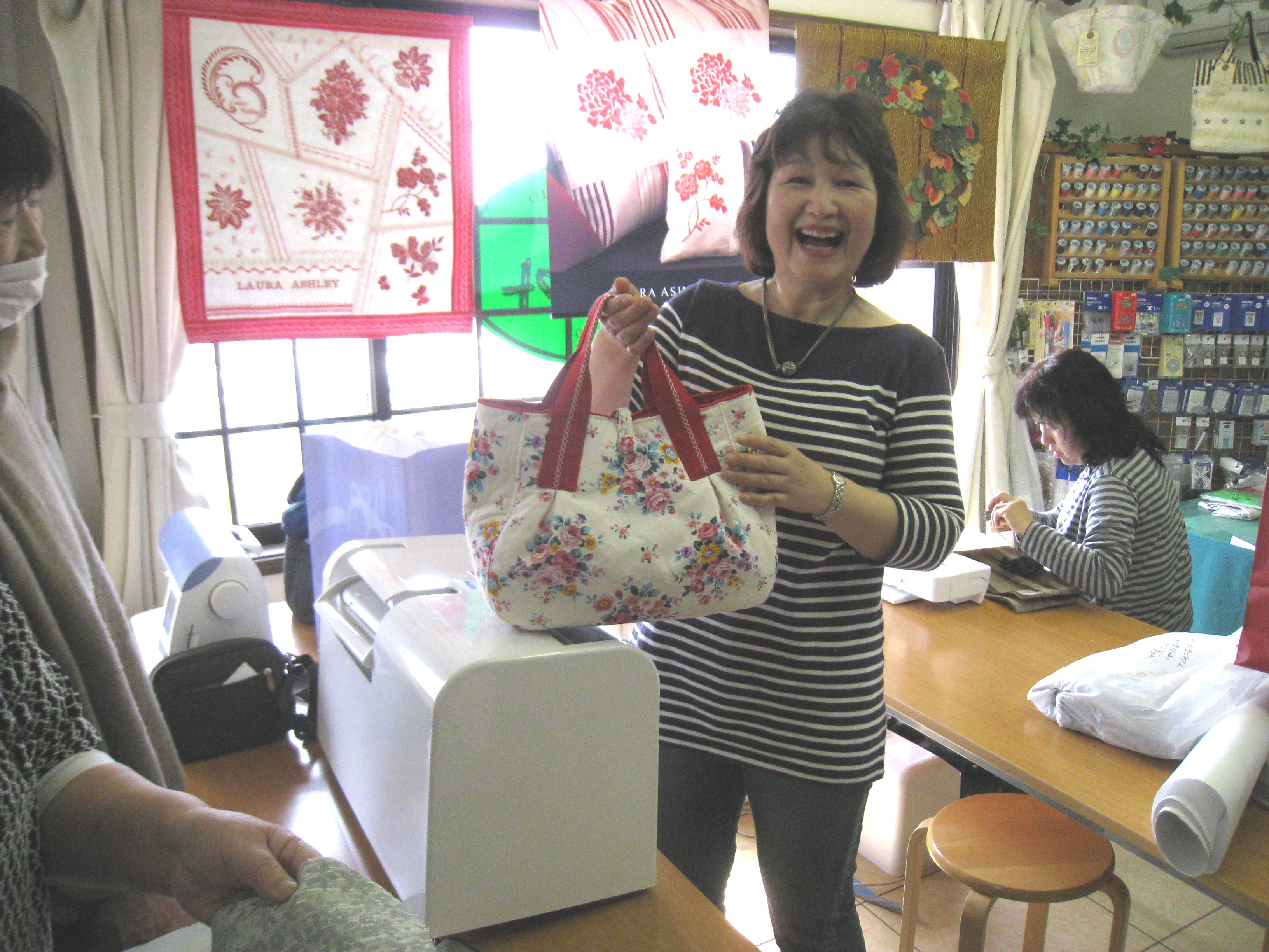 松田さんは『花柄のプリント地で作ったバッグ』をお披露目です。これも皆さんから『かわいい』と