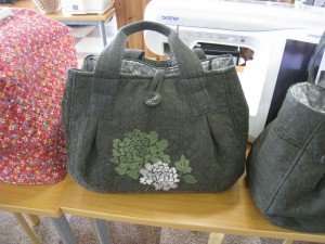 た。ついでに、今作っているバッグを見せてもらいました。ウール地の使い方と色の合わせ方が