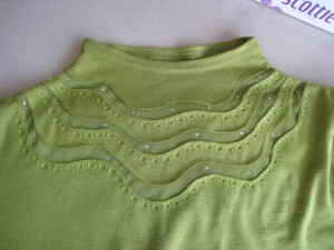 粕谷さんはご自分のお気に入りのカットソーから型紙を起しています。首周りの模様とパワー