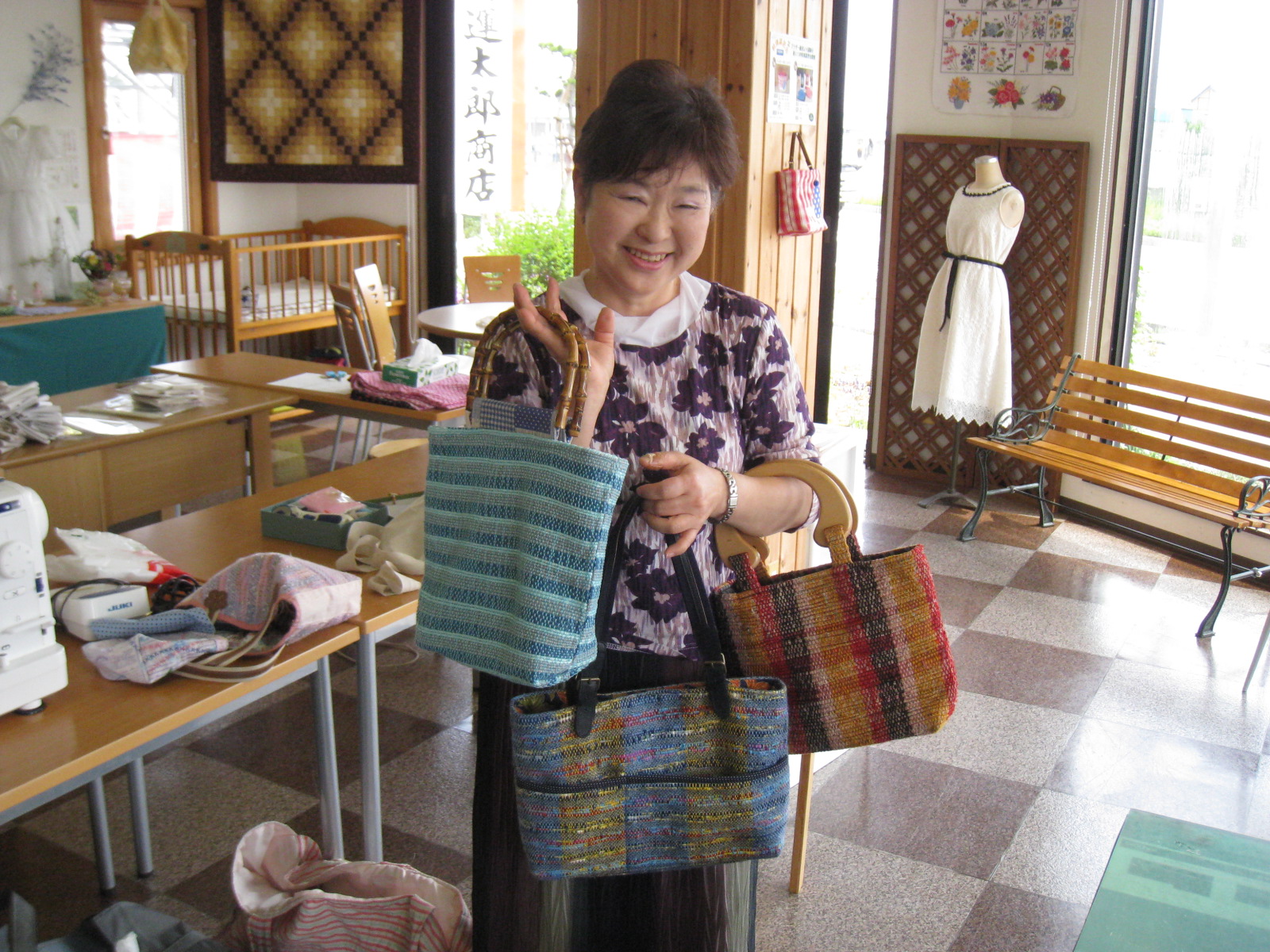 特に水色のバッグが夏らしいと好評でした。布も自分で織るということは、世の中に本当に