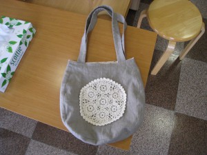 午後の部では百瀬さんが無事バッグを完成。ポイントはレースのモチーフです。娘さんにプレ