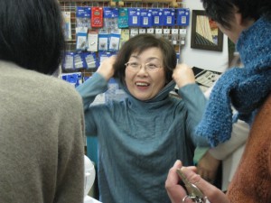 そこへ、3月ミシンを買っていただいた佐藤さん(70代、男性)が『糸の掛け方をもう一度教えて