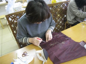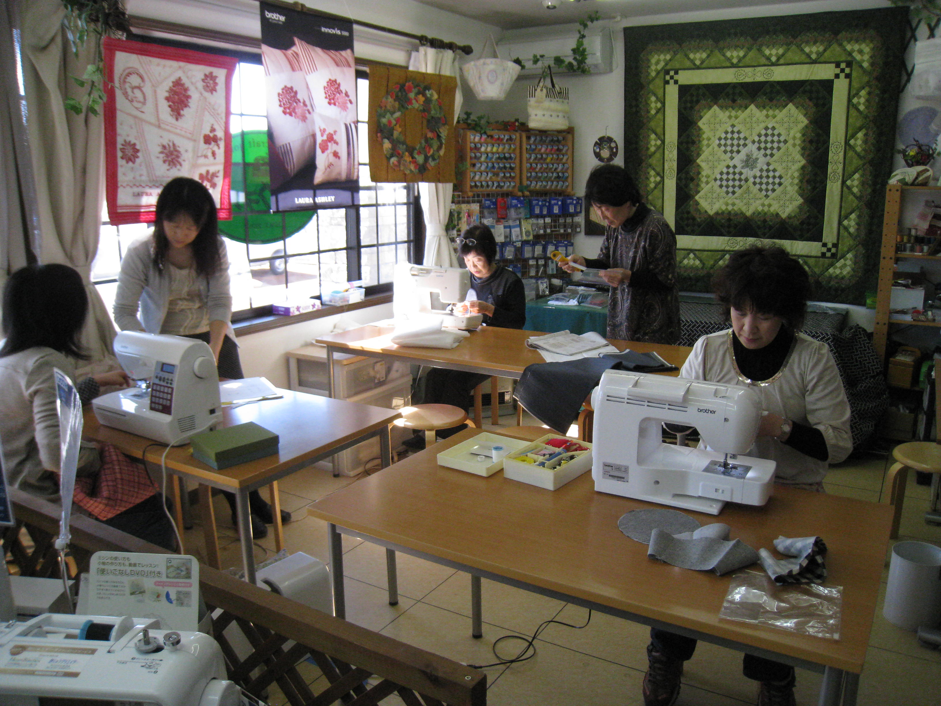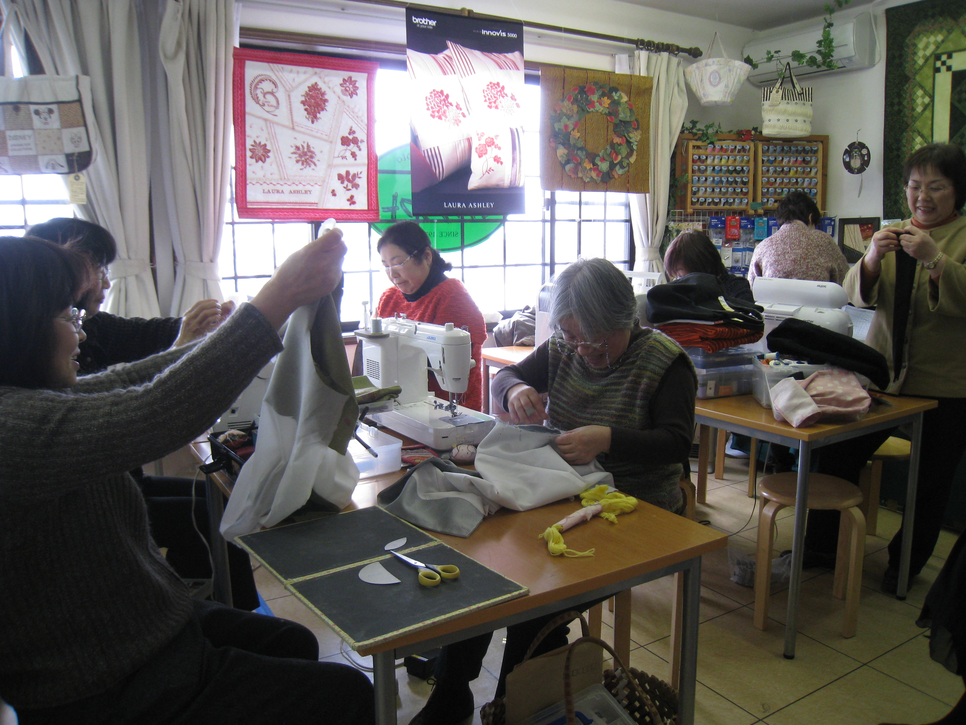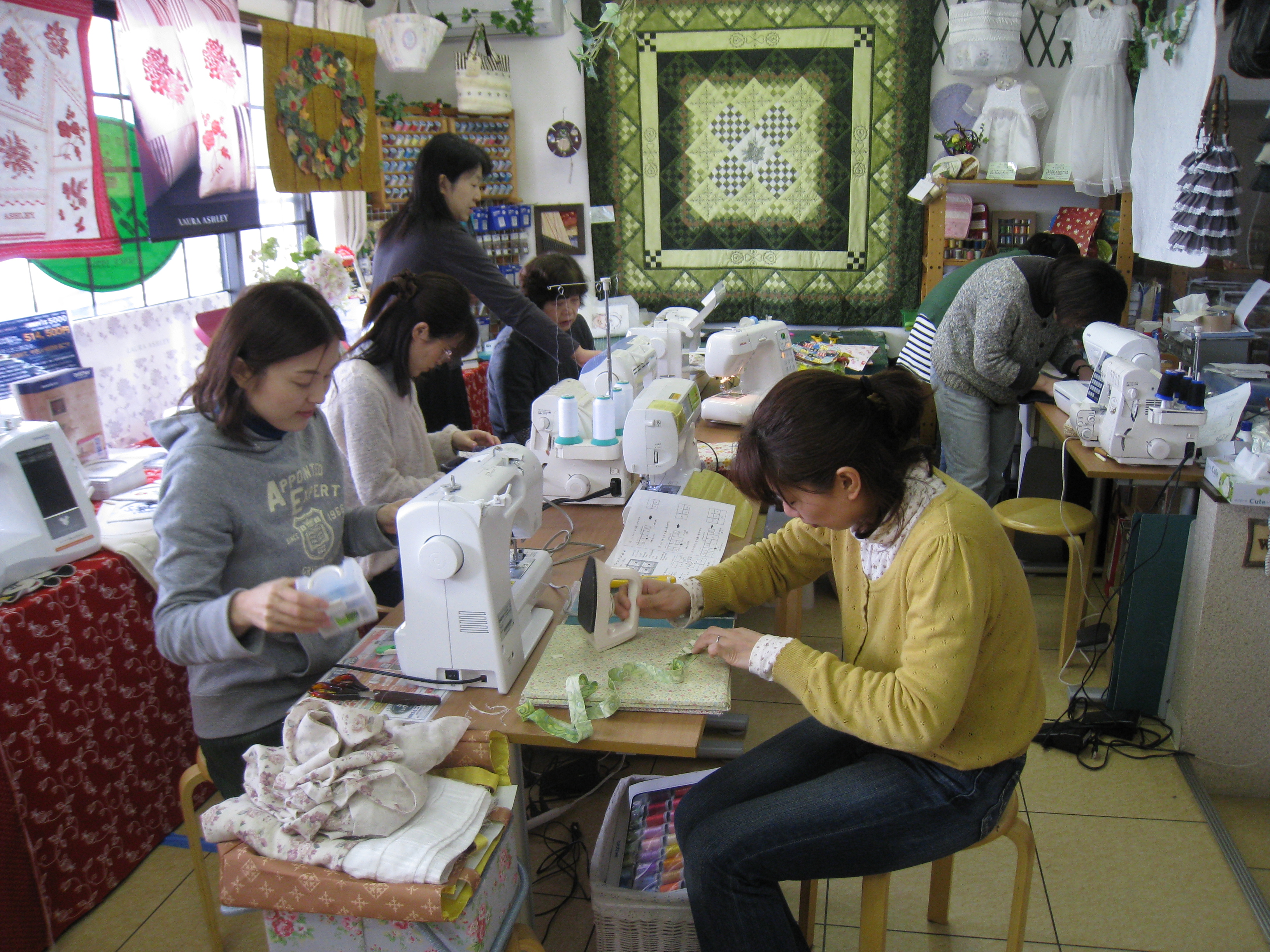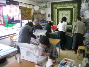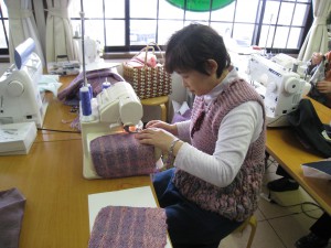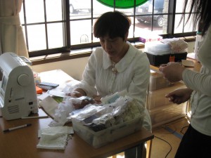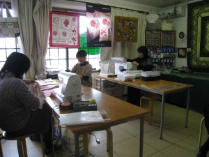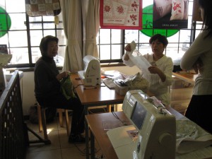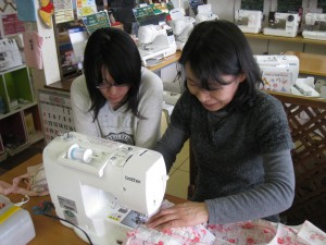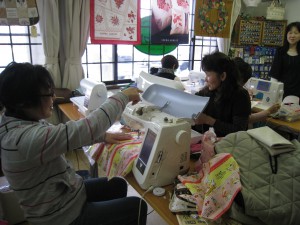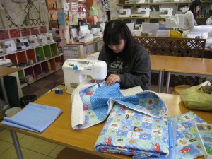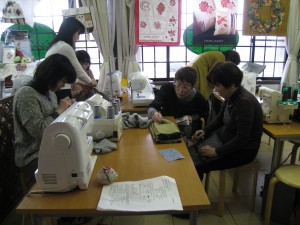 です。子供さんや孫さんのため限られた時間の中で皆さん集中してミシンに向かっています。