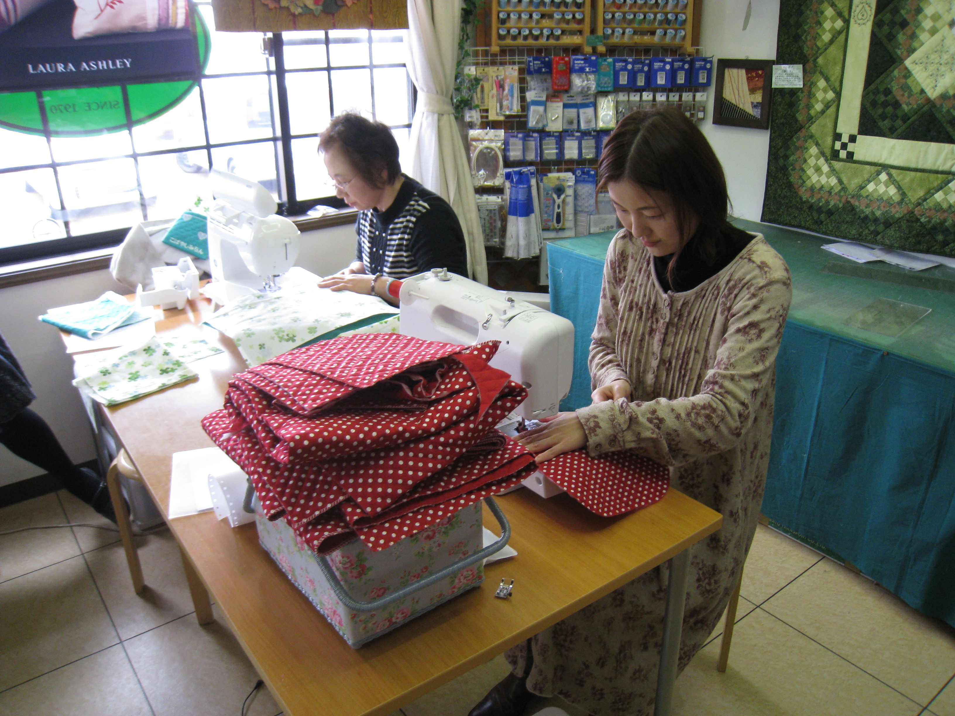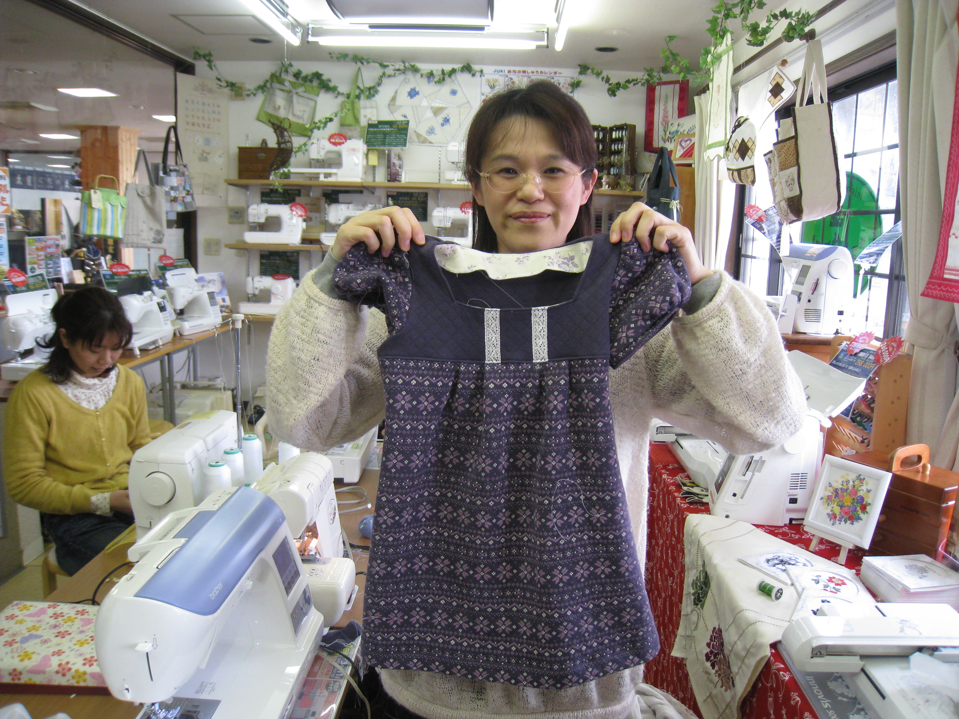 二人仲良く出来上がり!と、レンタルミシンでの講習会実施です。