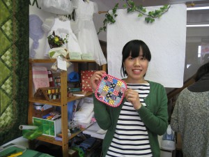 で、わざわざ古布や材料を買い求めてきたそうです。昨年当店で実施した特別講習会で作った