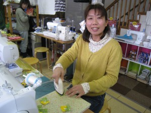 出来上がったようです。岩井さんは初回講習のエコバッグ作りをしていました。今回の講習で