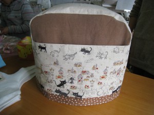 今日は、宮〇さん(匿名希望!)がパン焼機のカバーを完成させてご披露してくれました。ご披露