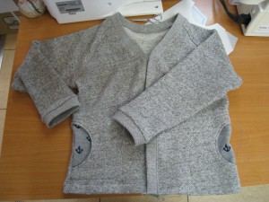敦子さんは子供の春用のカーディガンを完成。ポケットの『イカリマーク』がポイントです。
