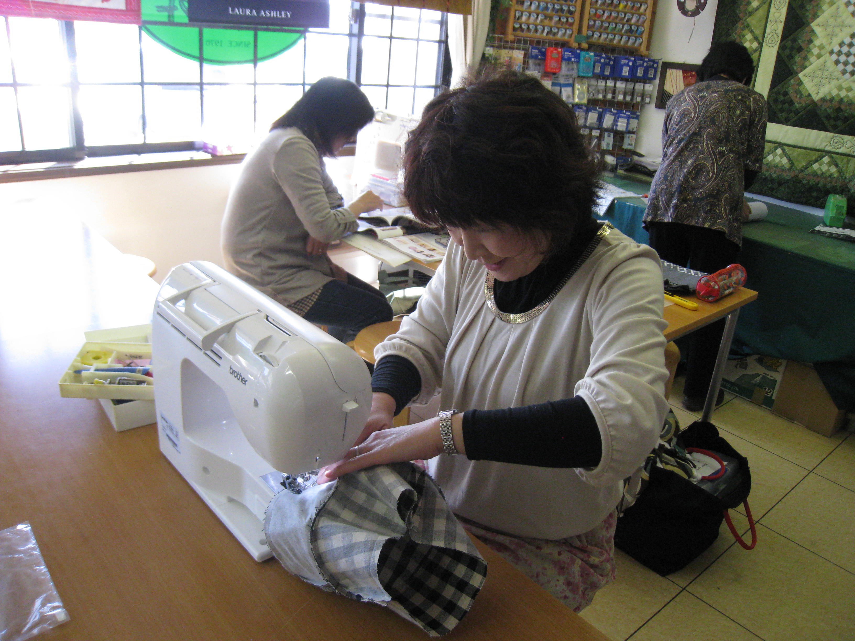 ミシンの使い方も慣れていくようです。周りの皆さんのパワーに圧倒されたようでしたが、