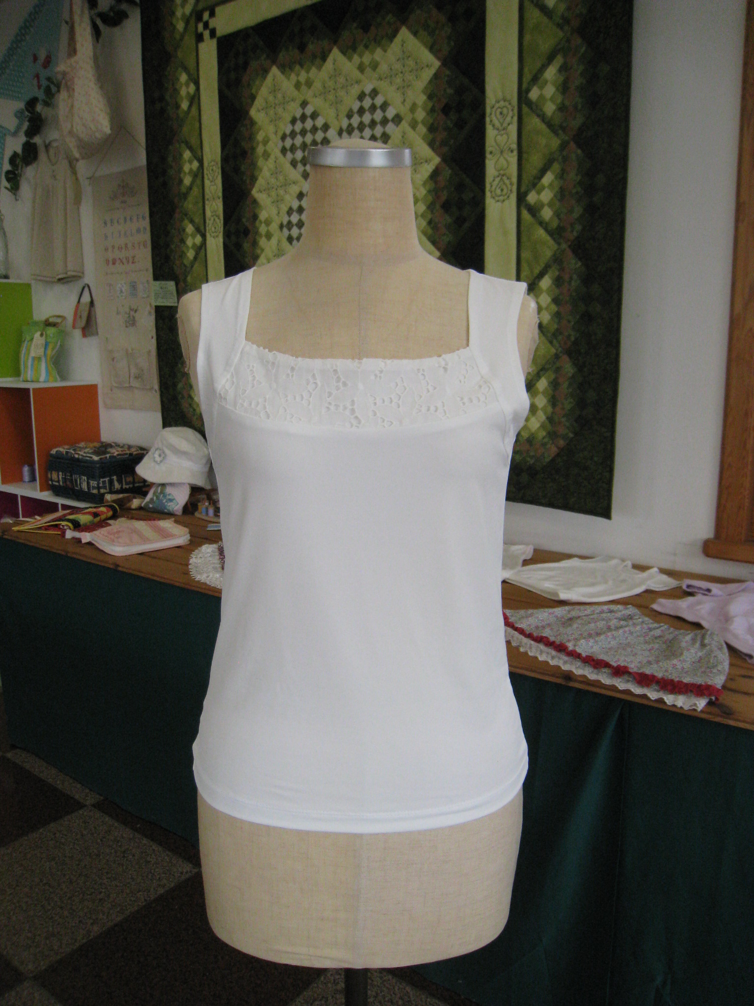 本日は当店オリジナル『胸元レースのノースリーブ』作りの特別講習会を開催しました。