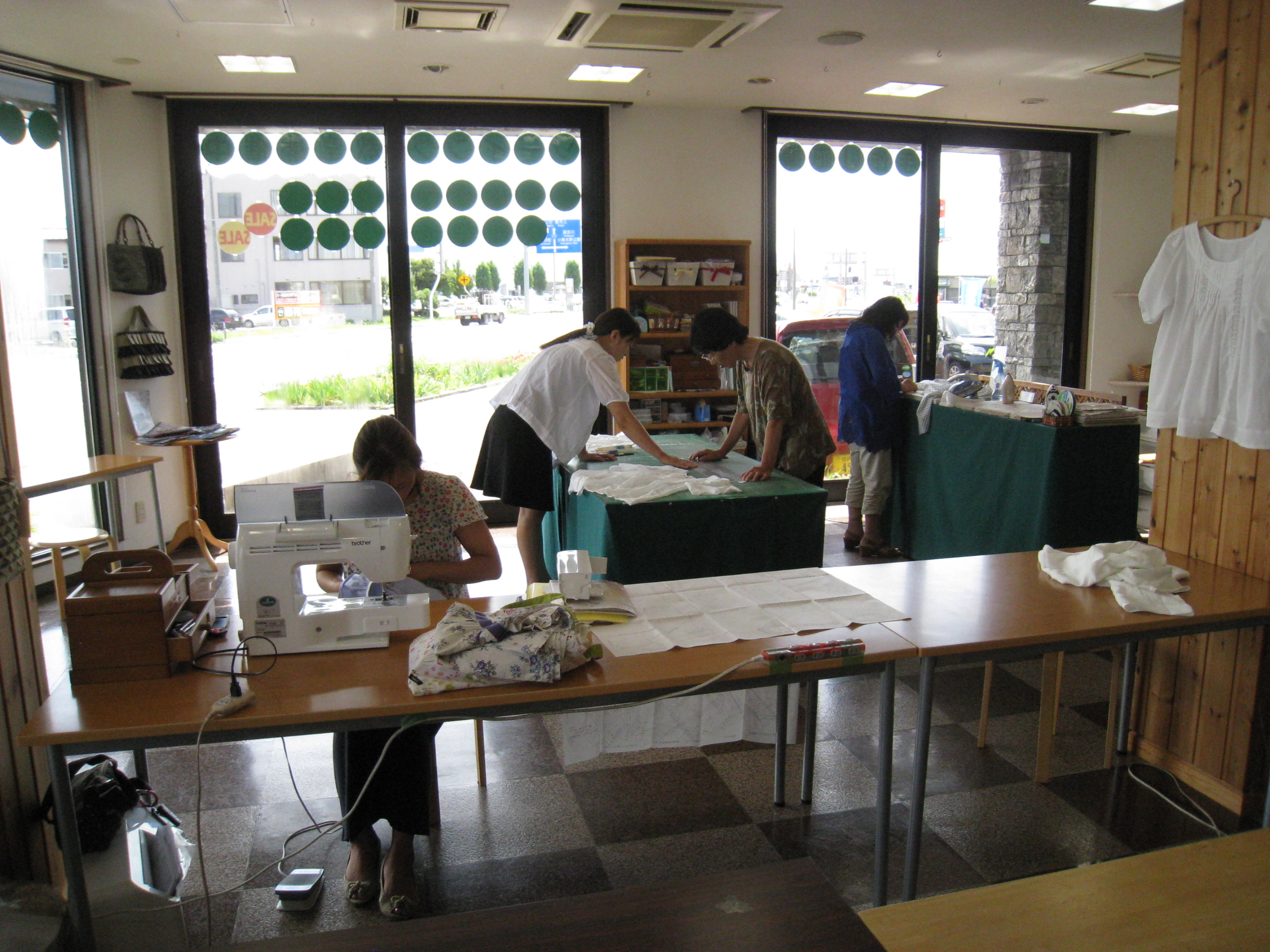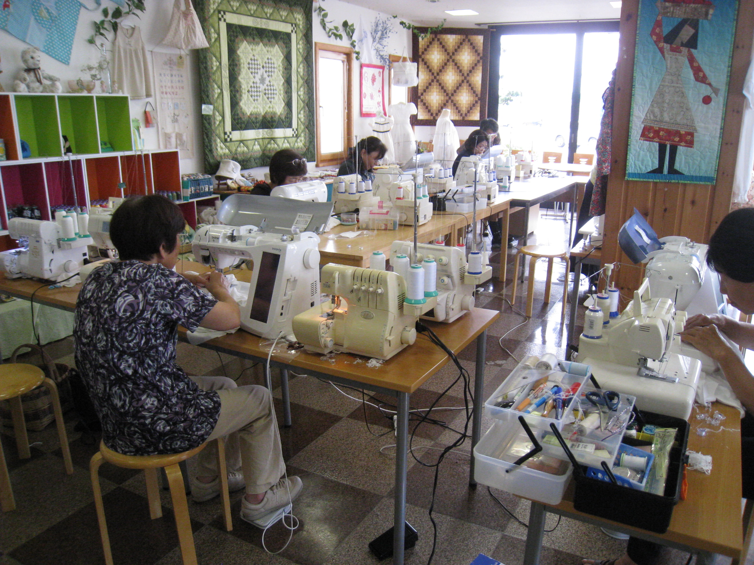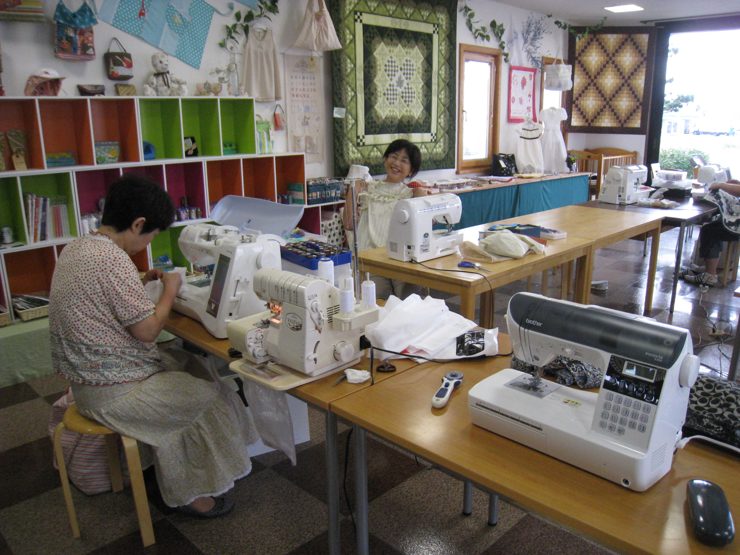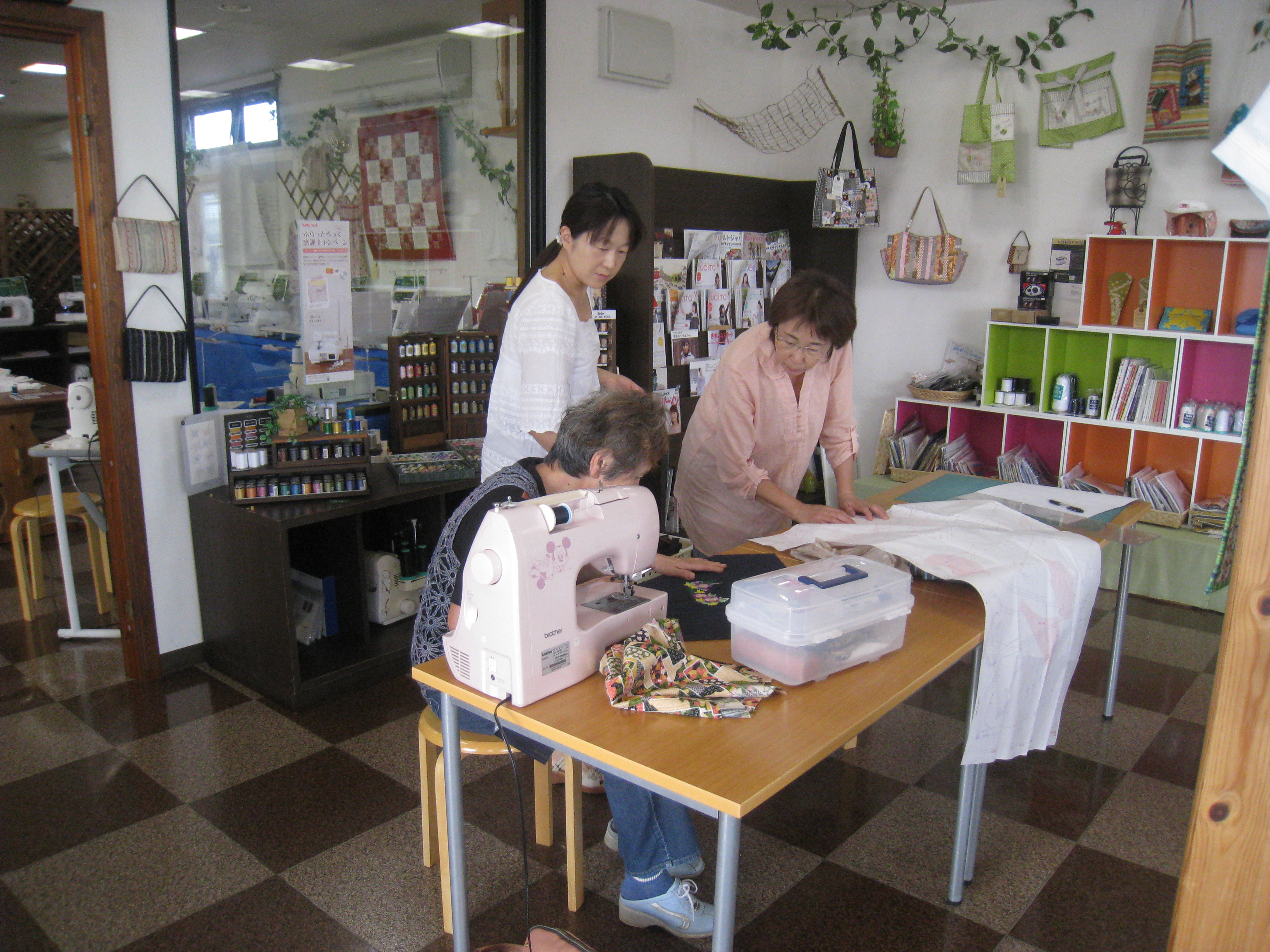 替えて縫っていくことです。そんなわけで、お店の中は皆さんの持ってきたミシンで溢れ