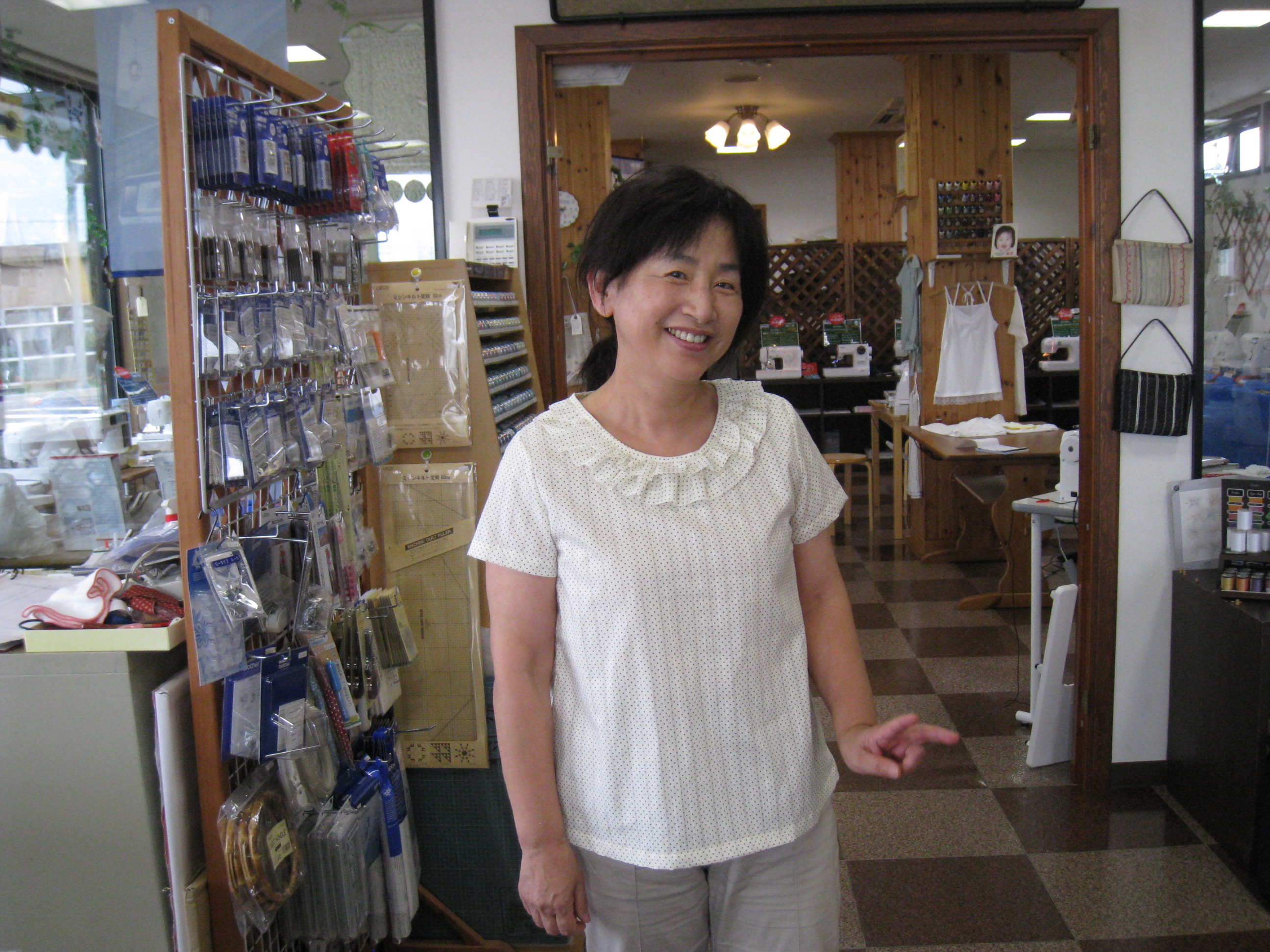 午前、午後の部通しで参加の敦子さんは、『ドット柄のブラウス』を完成させました。