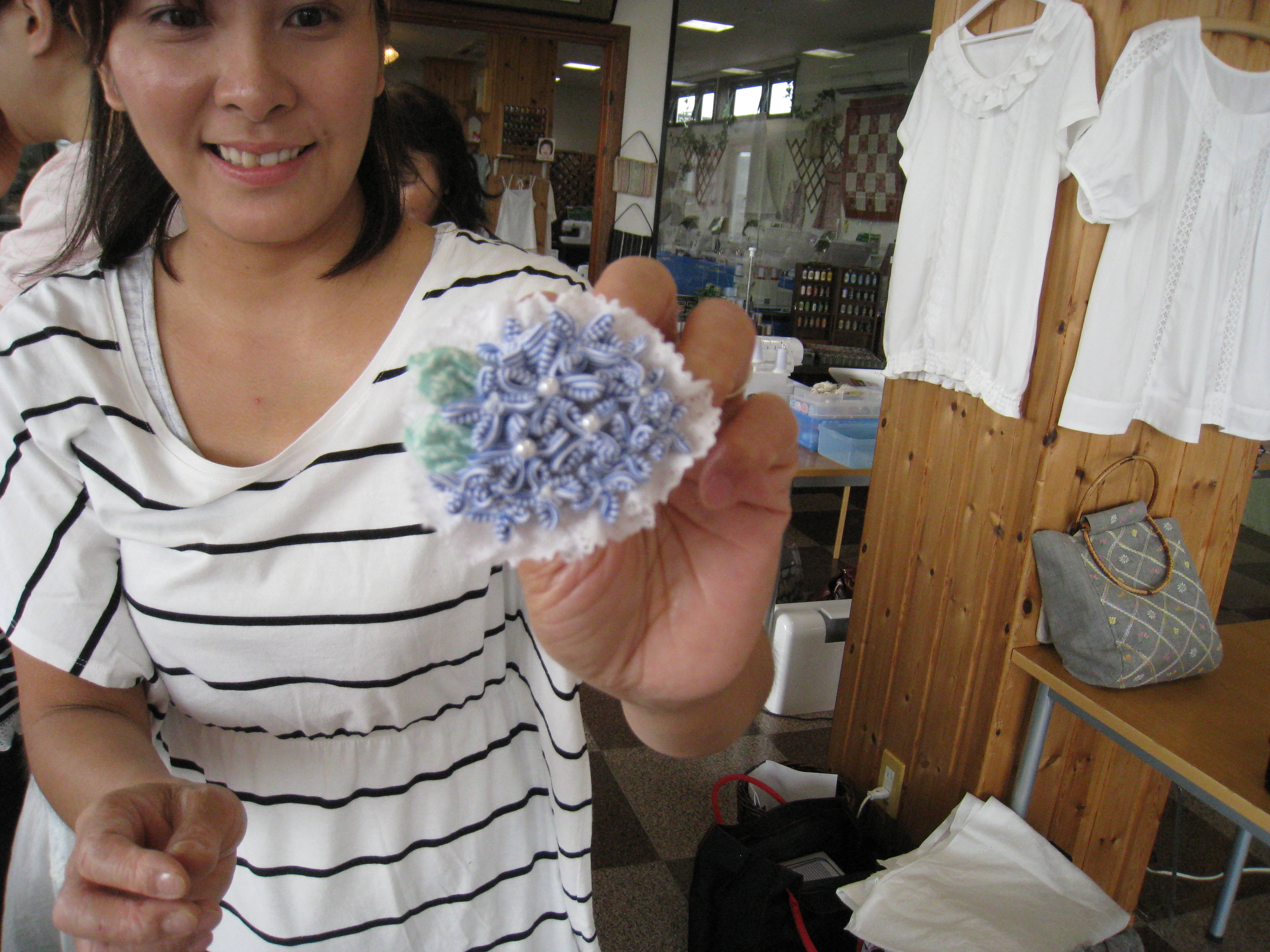 ミシンの講習会を行っていてうれしいのが、お客さんが作った作品を見せに来てくれる