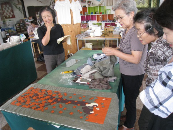 早坂さんの奥さんは『手ぬぐいで作るキルトのタペストリー』を作成中です。今回は