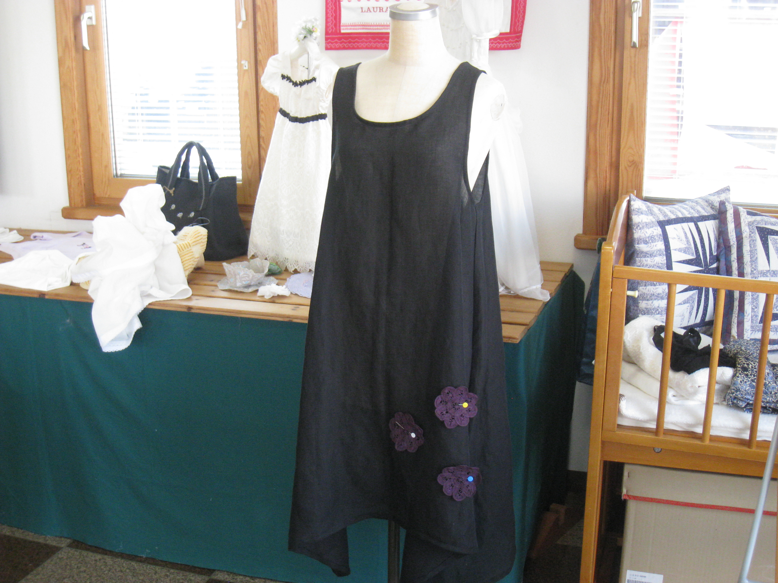 午後の部では本田さんが黒のワンピースをほぼ完成させました。買ってきたモチーフを