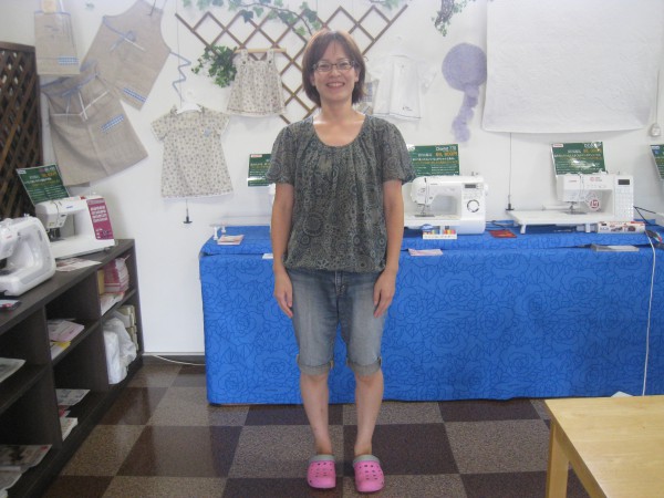 本日の講習では早坂さんが『フリルブラウス』を完成させました。夏にぴったりの涼しげ