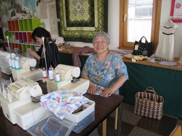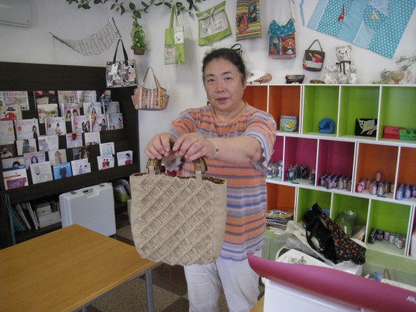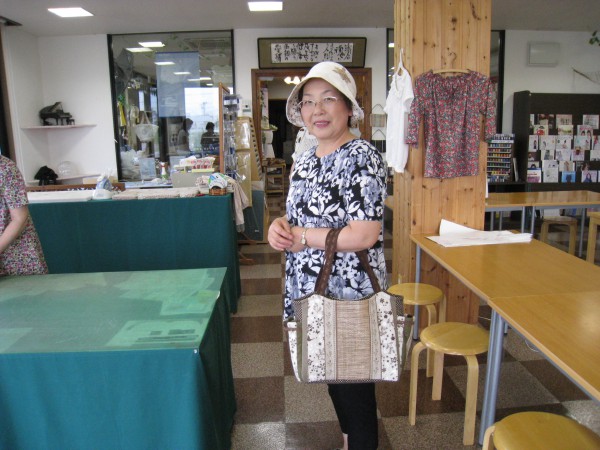 午前の部では、粕谷さんが5月から作っていた『しな織り』を使ったキルトバッグを完成