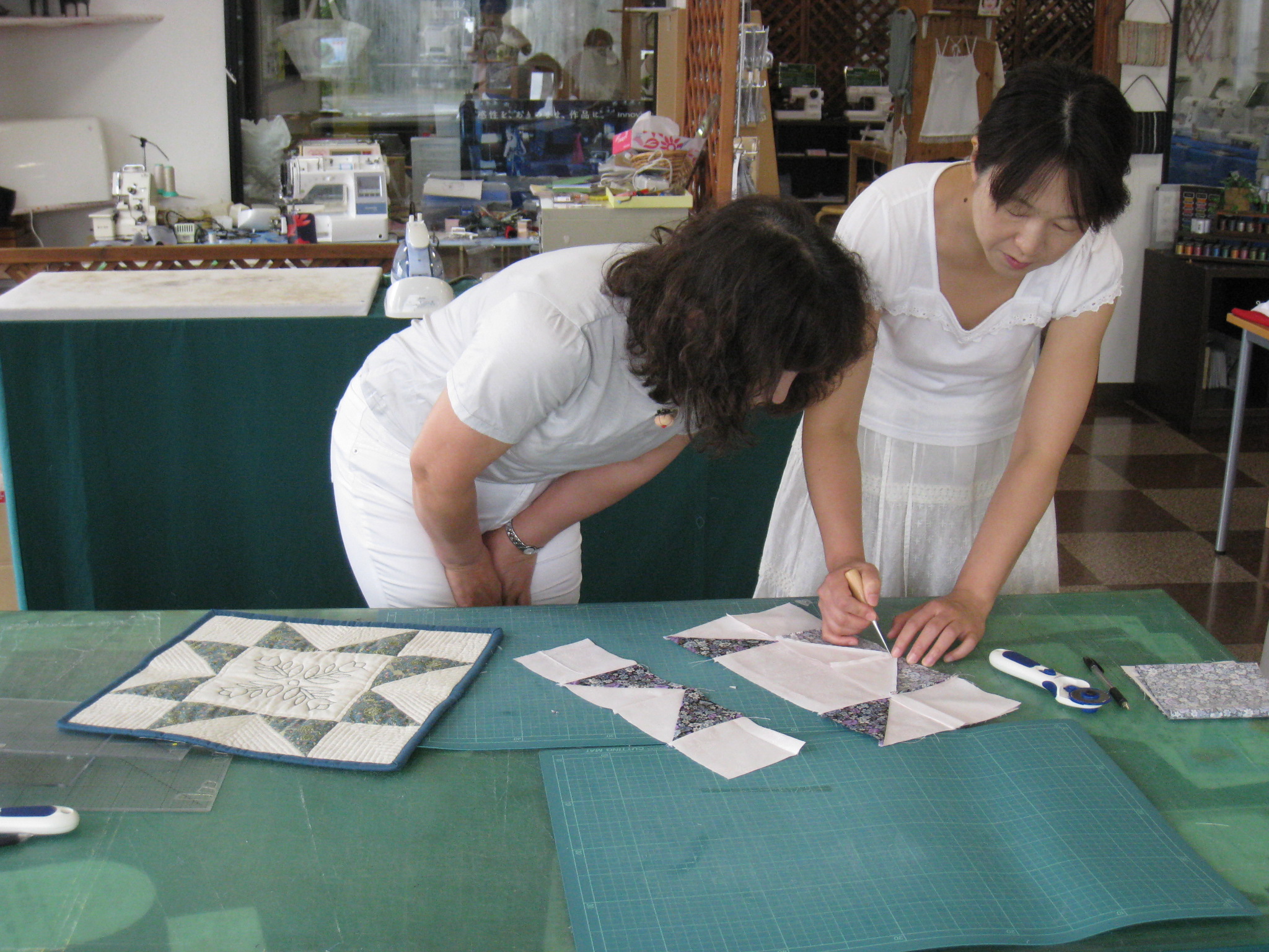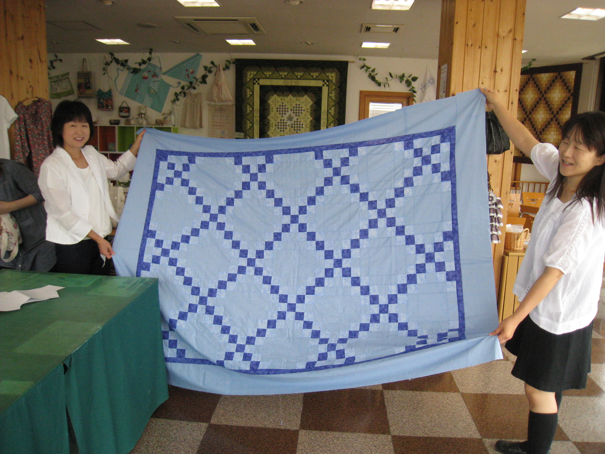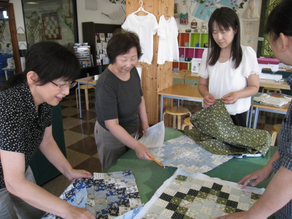 ことや角と角をしっかり合わせるのが難しいキルトです。皆さんちょっと出来上がると