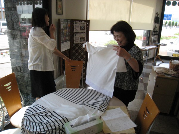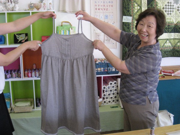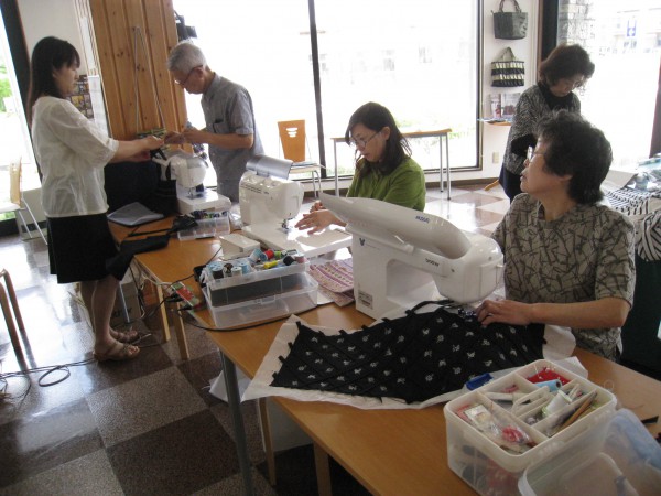午後の部では赤松さんが『エプロン風重ね着?』を完成!『縫ってはほどき、縫っては