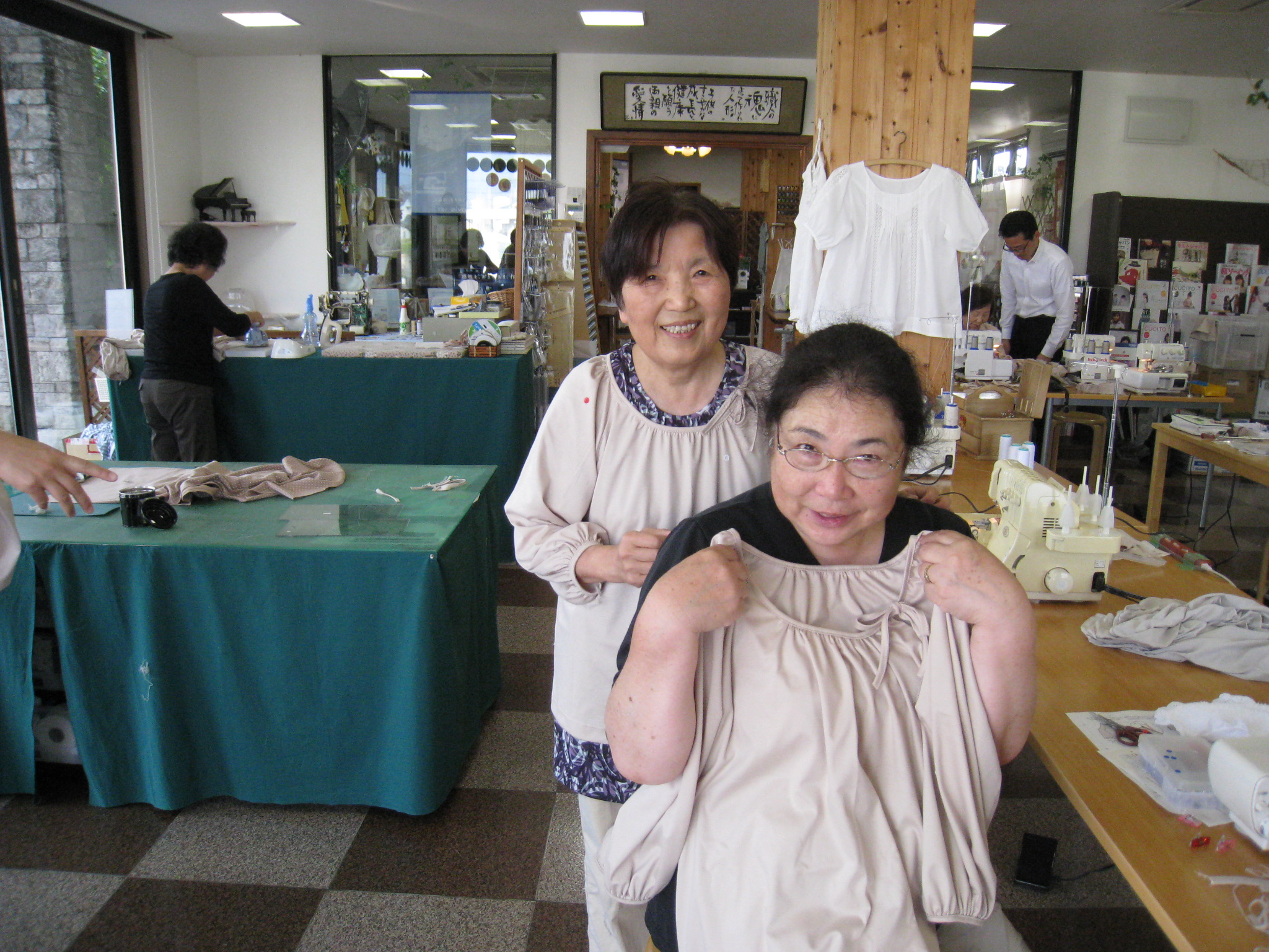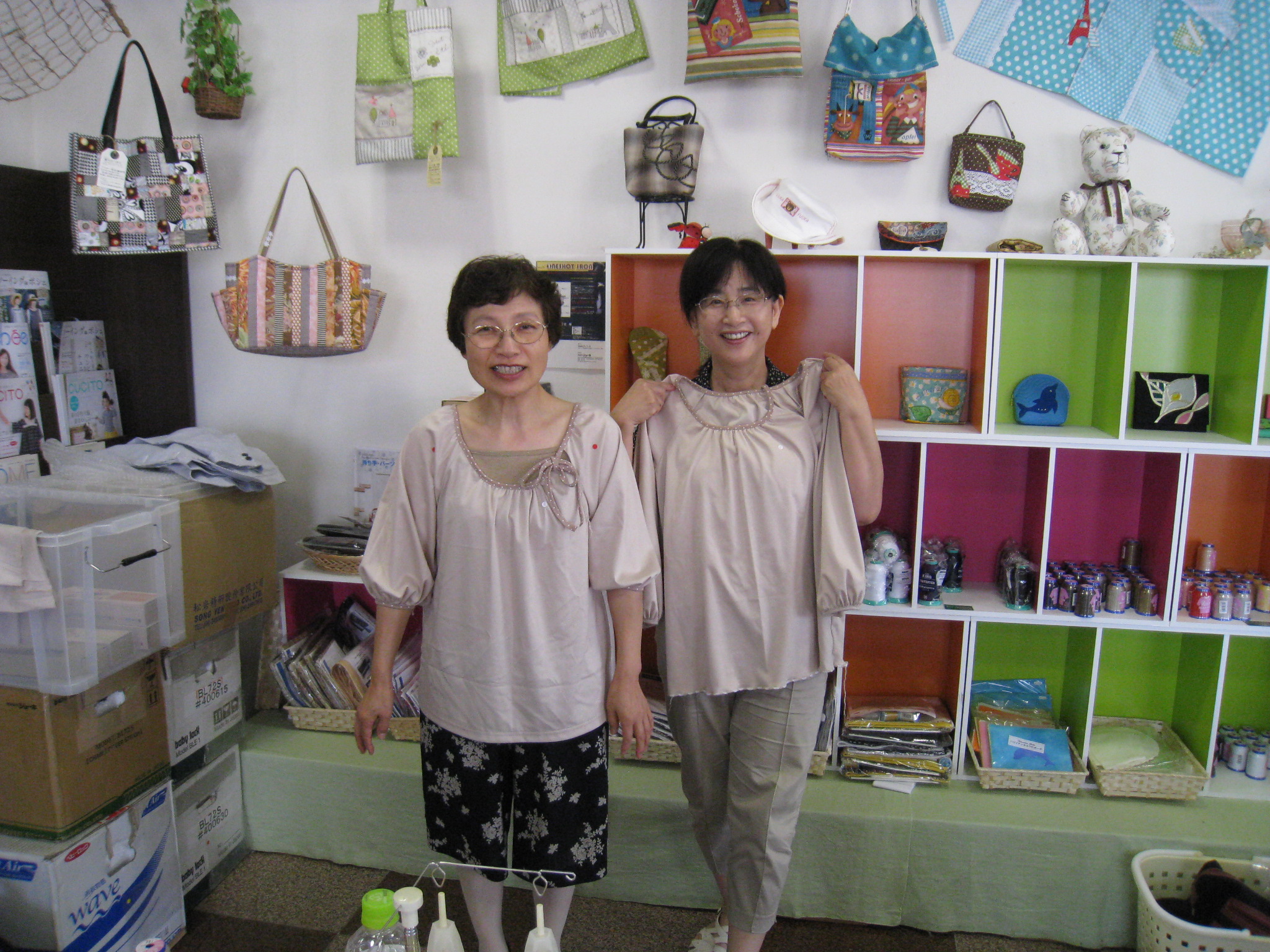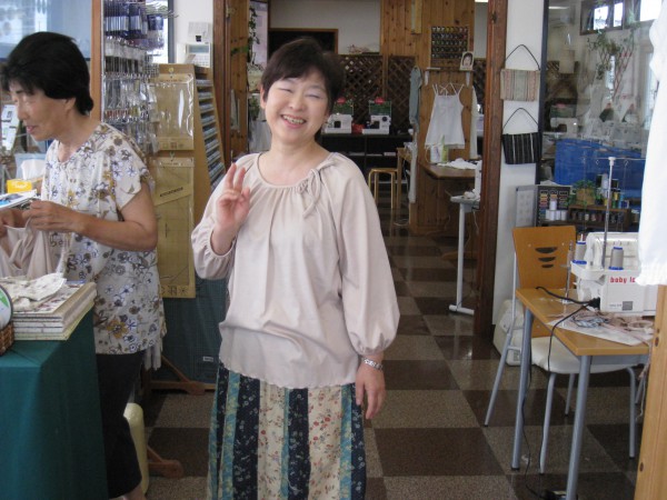 作って着て来店の五十嵐さん。これからはお孫さんの物を作る楽しみが増えそうですね。