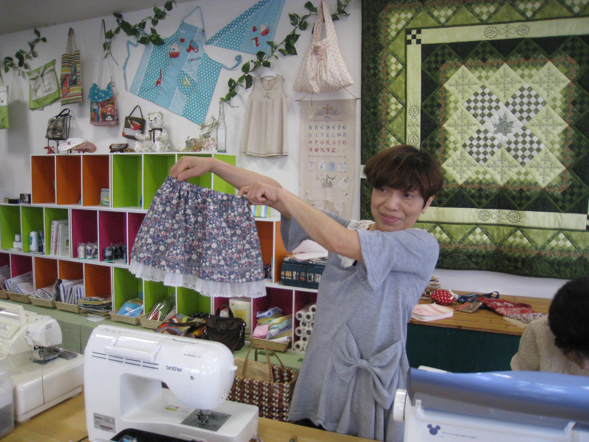 木曜日に参加の飯白さんは親戚の子供にプレゼントするスカートを完成させました。飯白