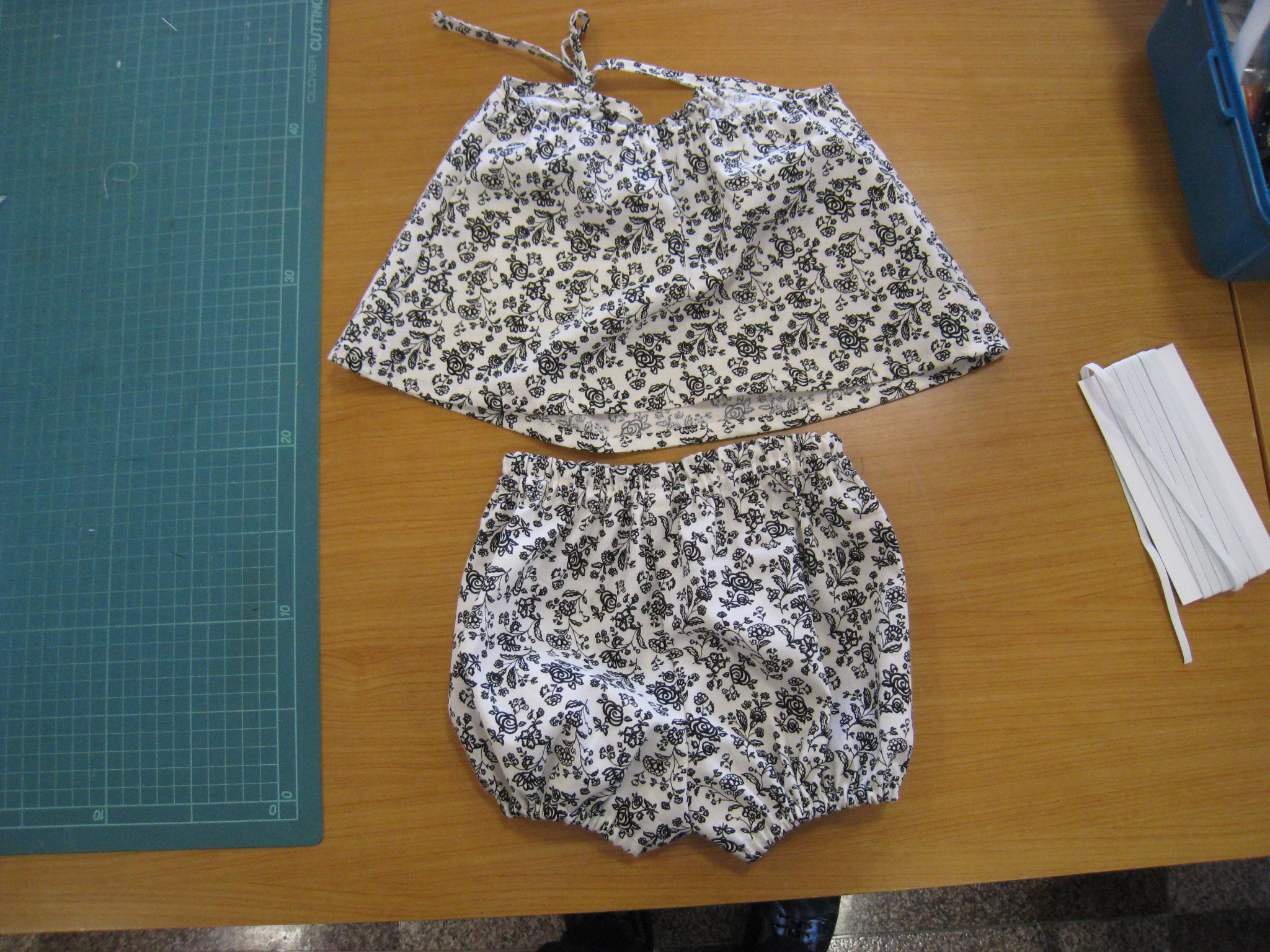 です。白地に薄紫の花柄の生地を裁断して、いよいよこれから縫製開始です。8月のお盆