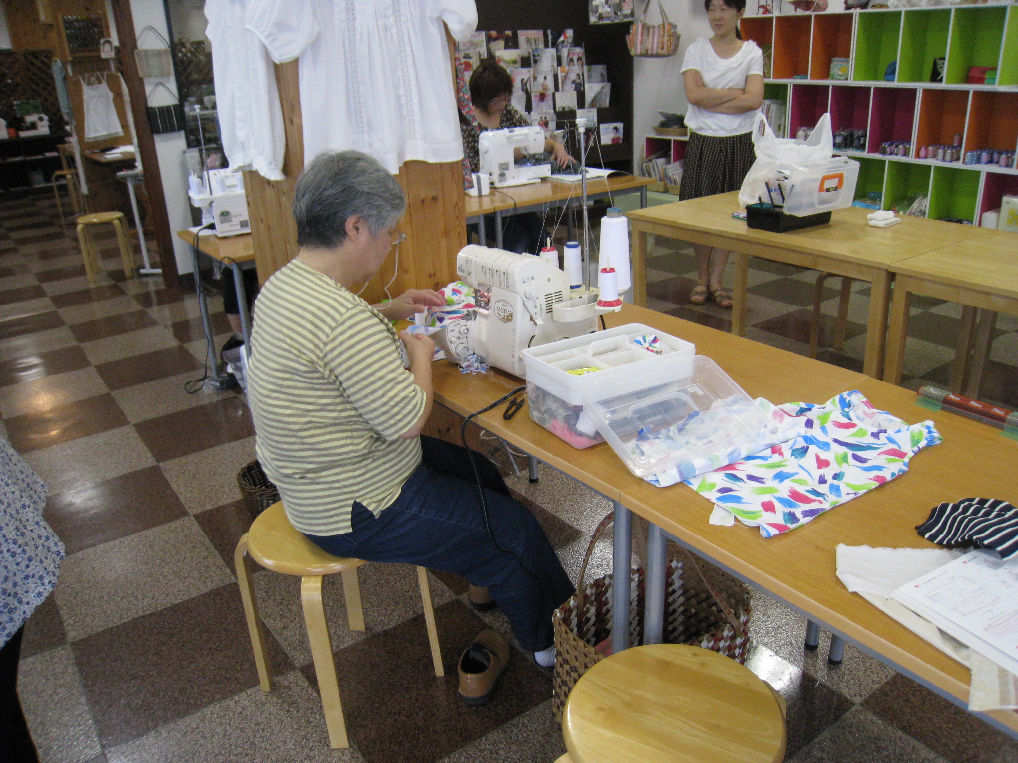 一方、常連の美智子さん。ロックミシンを使いながらお孫さんのワンピースを作成中。