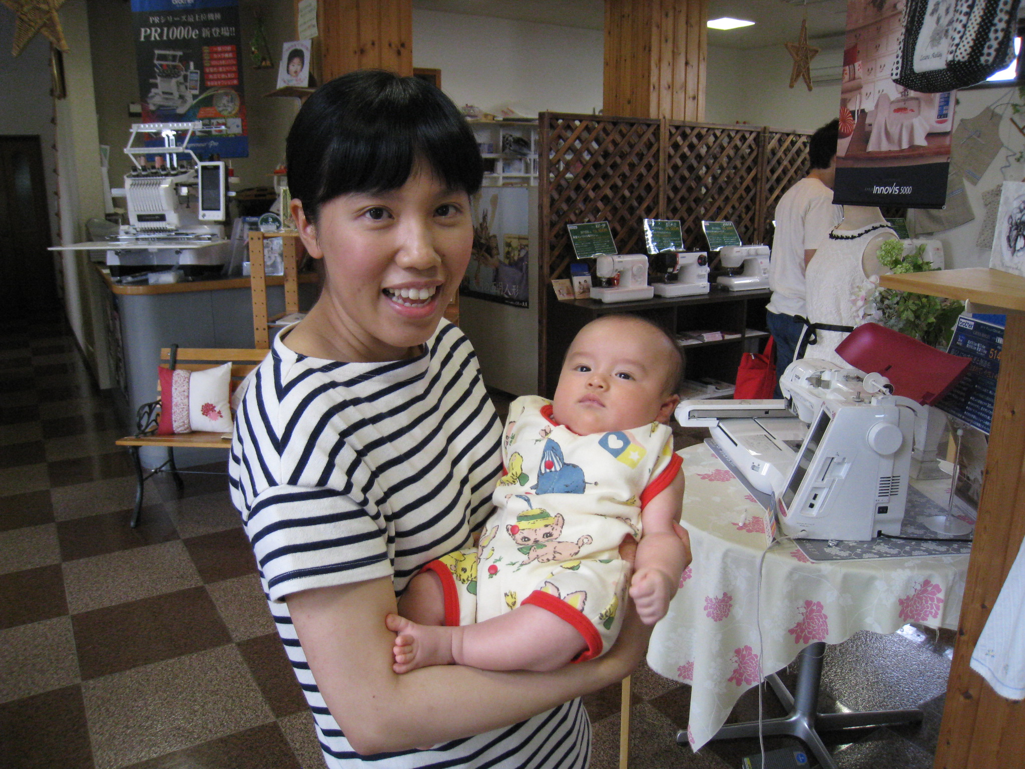 5月に無事出産して、旦那さんと一緒に赤ちゃんを見せに来てくれました。きりっとした