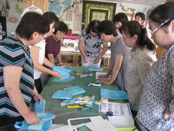 実施しました。前回の講習で5種類の生地を縫い付けて形になってきました。