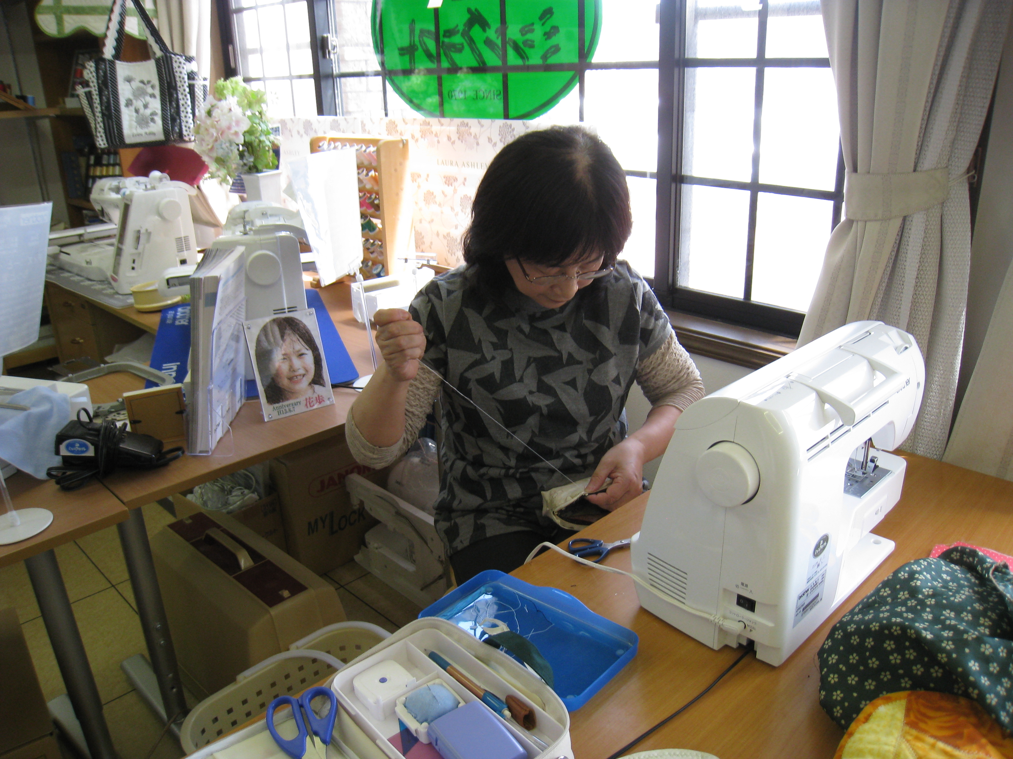 午後は初回講習を実施しました。昨年ミシンを買っていただいた斎藤さんが帽子作りで
