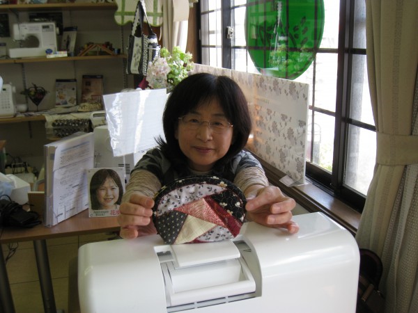 と一緒にパチリ。百瀬さん刺しゅうプロを使って、今日はお孫さんのお顔の刺しゅうに